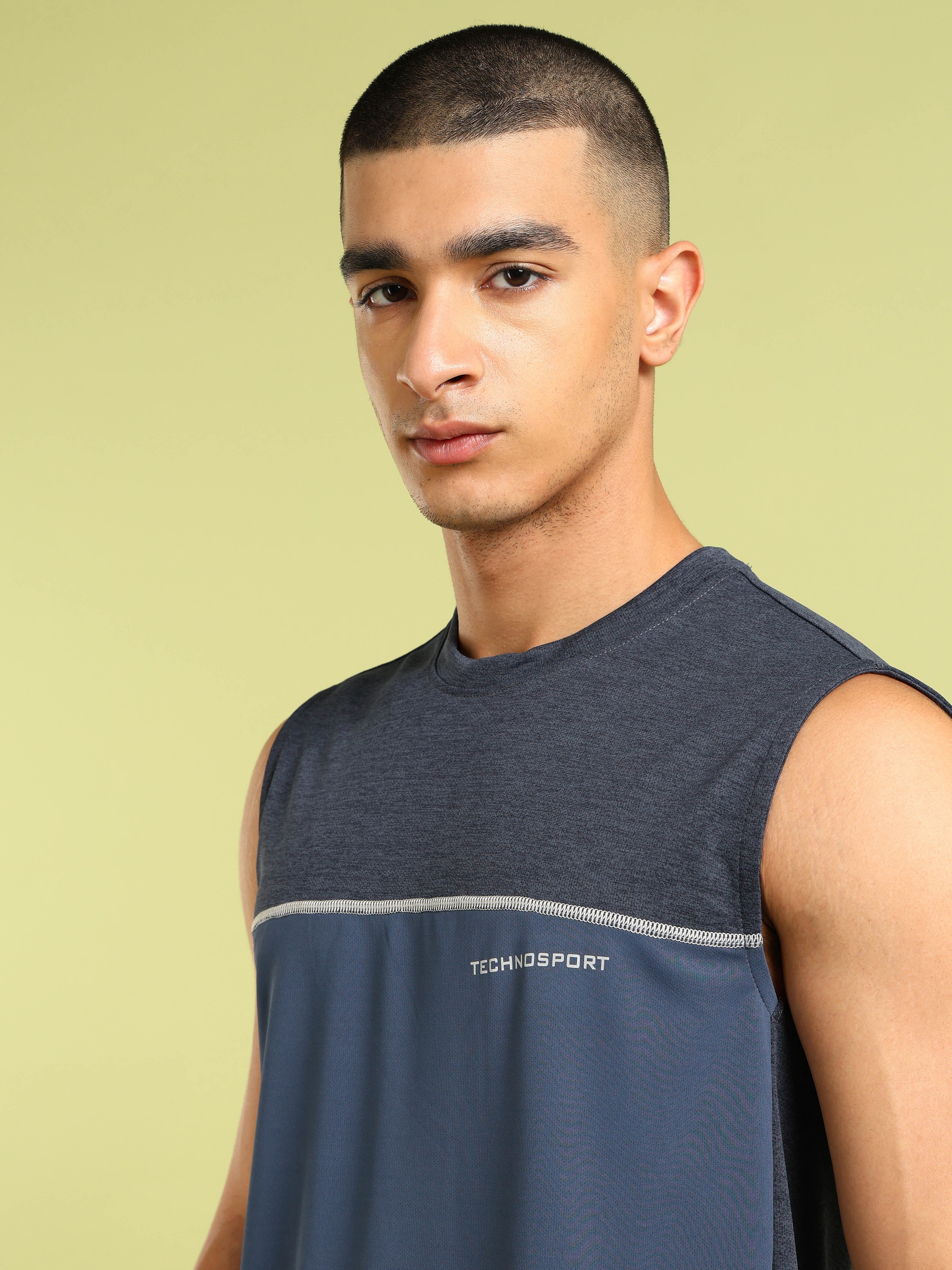 Men Colorblock Slim Fit Crew Neck Innerwear Vest with TECHNO COOL+