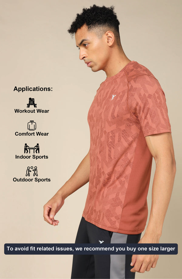 Offer Valid on a Minimum Cart Value of ₹999Men Self Design Slim Fit Crew Neck T-shirt with DOUBLE COOL