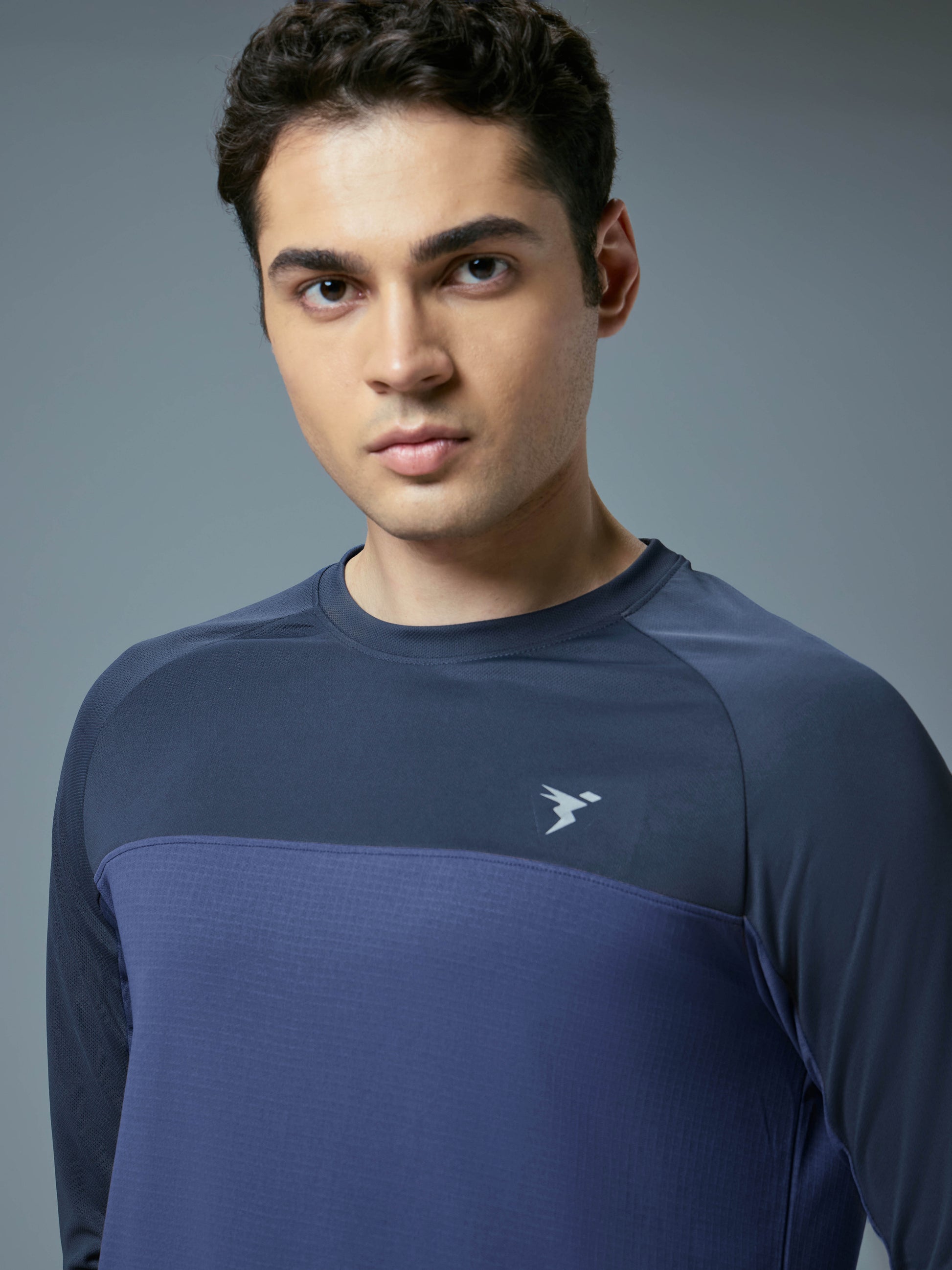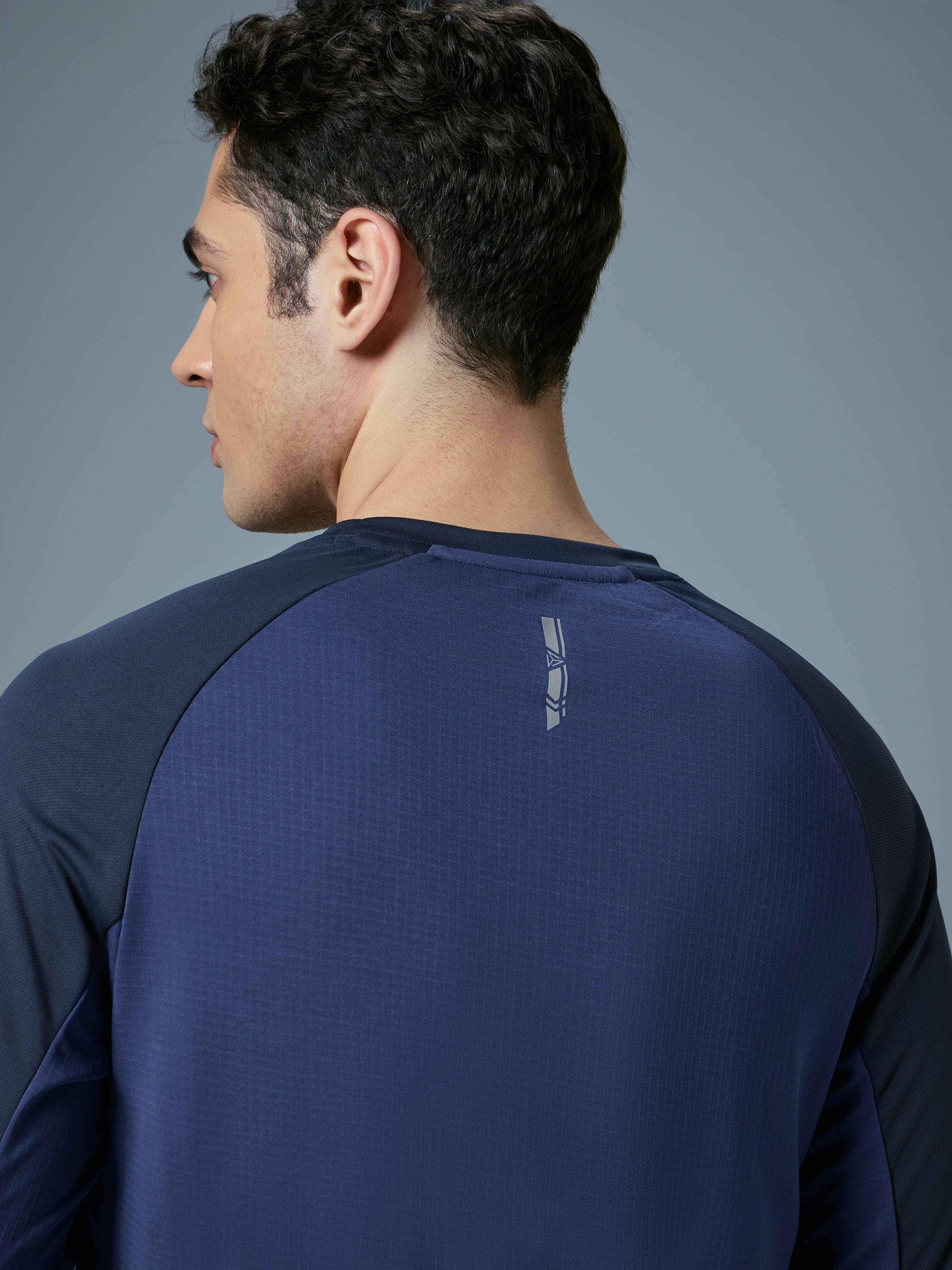 Offer Valid on a Minimum Cart Value of ₹999Men Colorblock Slim Fit Crew Neck T-shirt with TECHNO COOL+