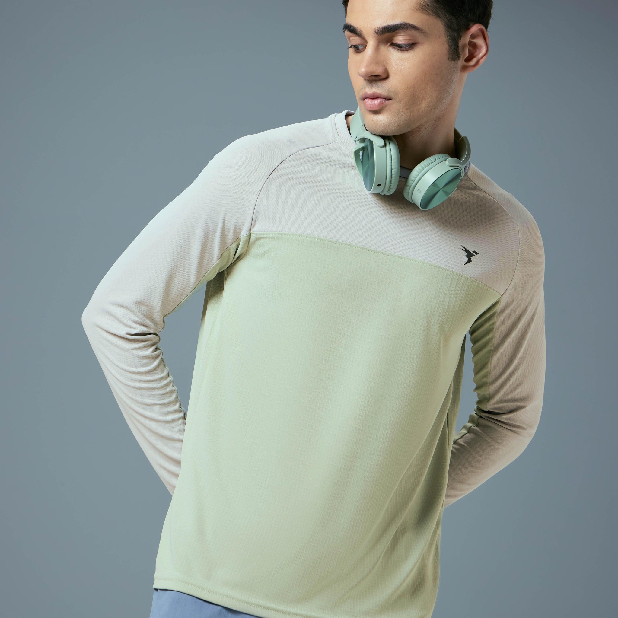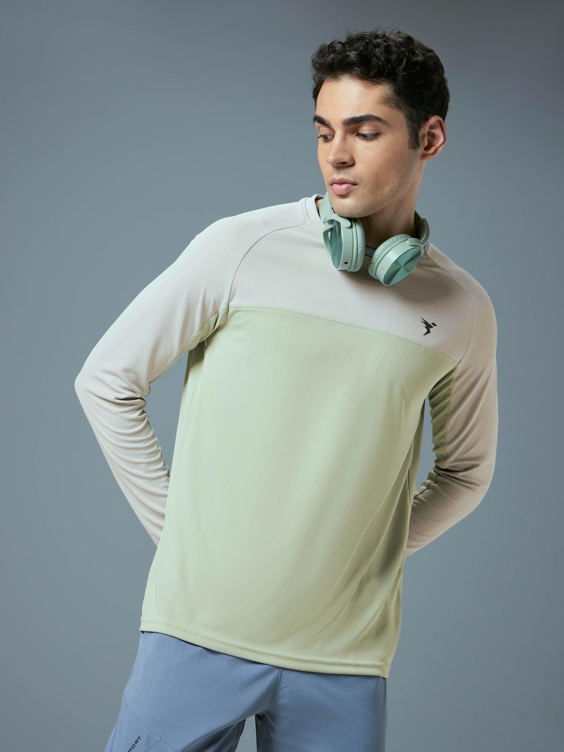 Men Colorblock Slim Fit Crew Neck T-shirt with TECHNO COOL+