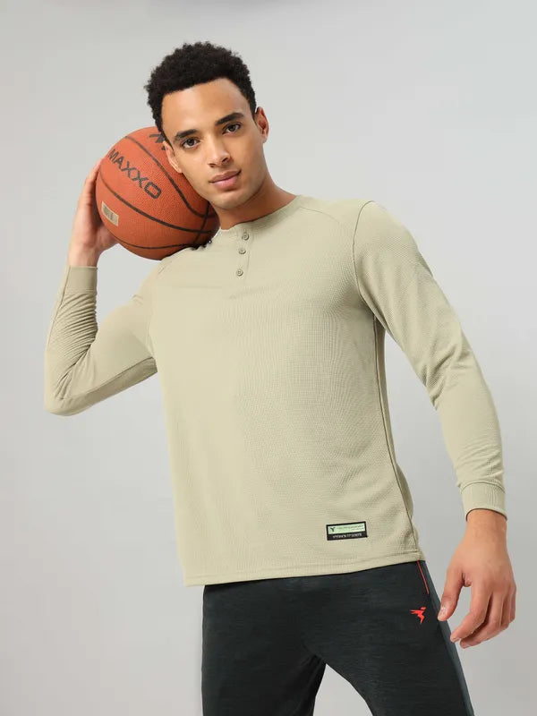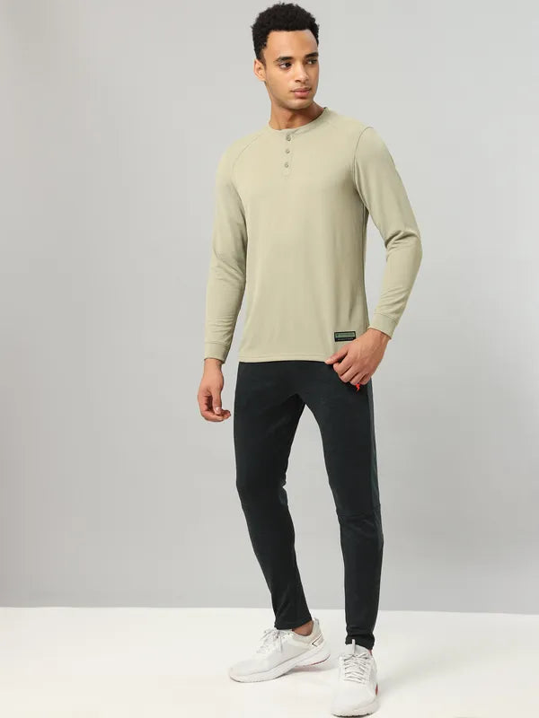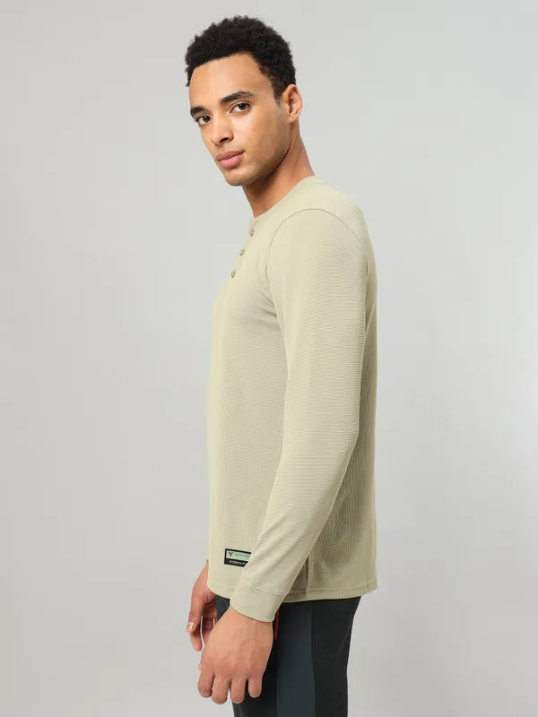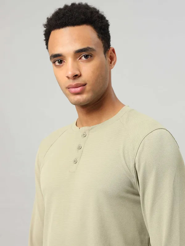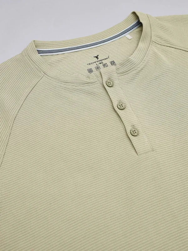 Offer Valid on a Minimum Cart Value of ₹999Men Self Design Slim Fit Henley Neck T-shirt with MATPIQ