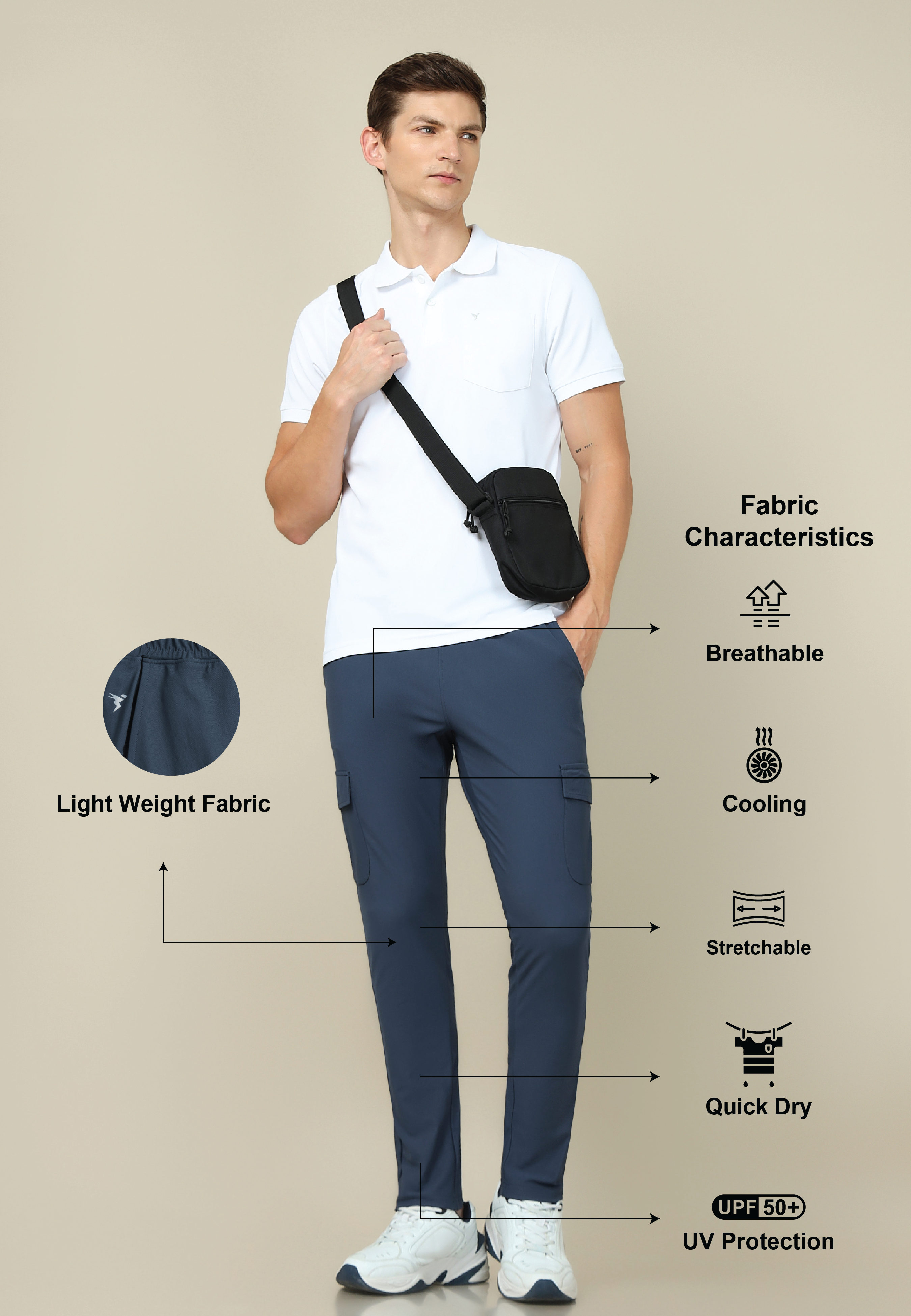 Stay cool and comfortable all day in our Duracool+ Cargo Trackpants for men. These trackpants are crafted with innovative Duracool+ technology, offering enhanced breathability and moisture-wicking properties. With their cargo-style design, they provide ample storage for your essentials while maintaining a stylish and contemporary look. Perfect for both casual outings and active pursuits, these trackpants are a must-have addition to your wardrobe