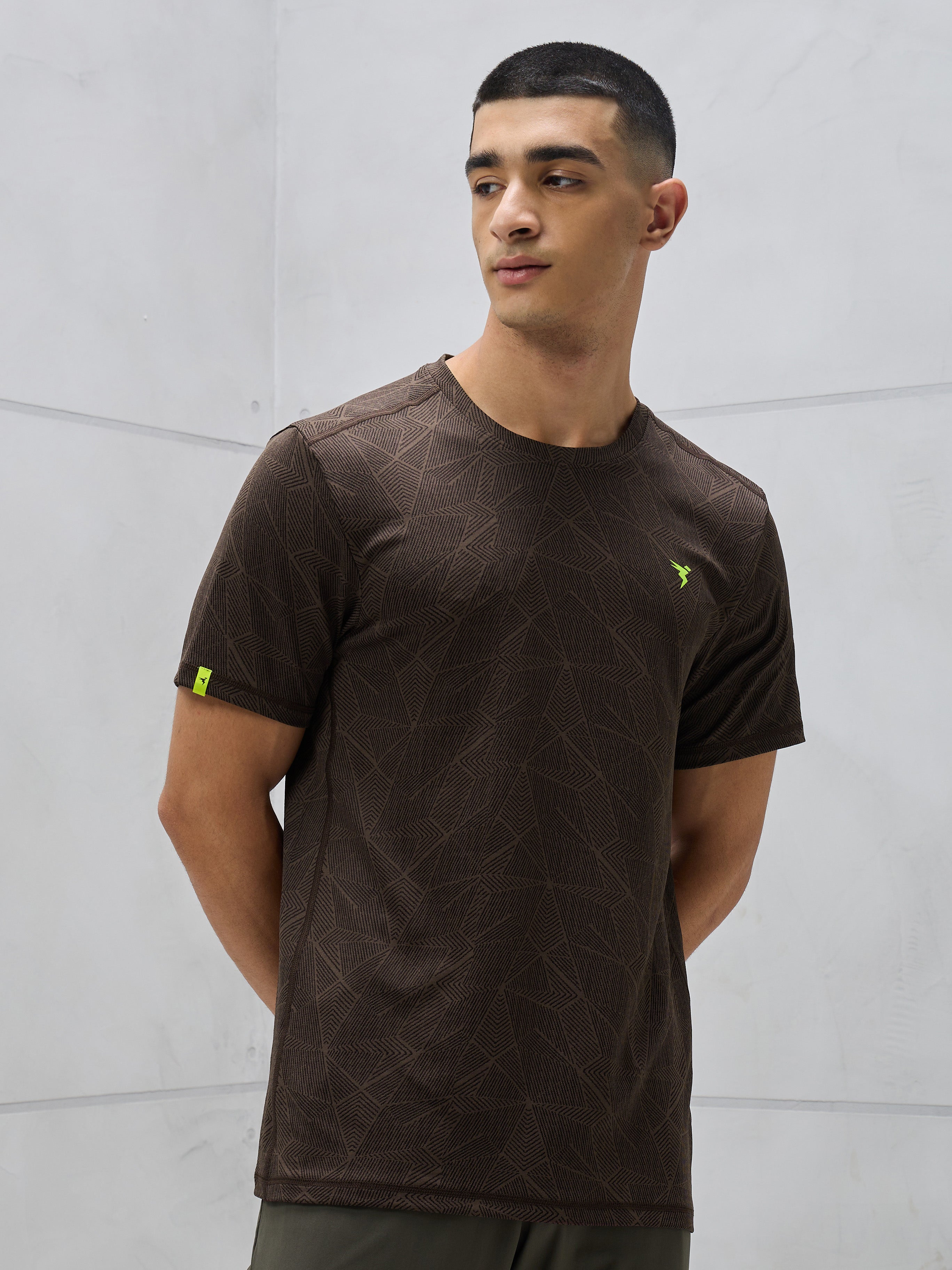 Men Jacquard Slim Fit Crew Neck T-shirt with DOUBLE COOL