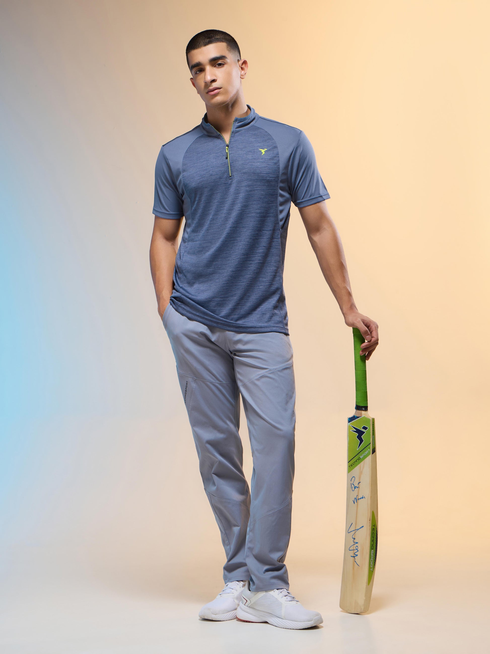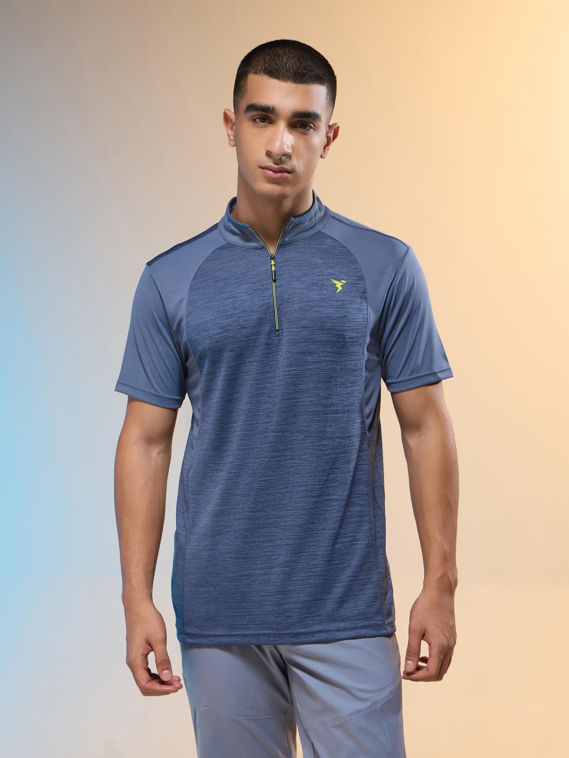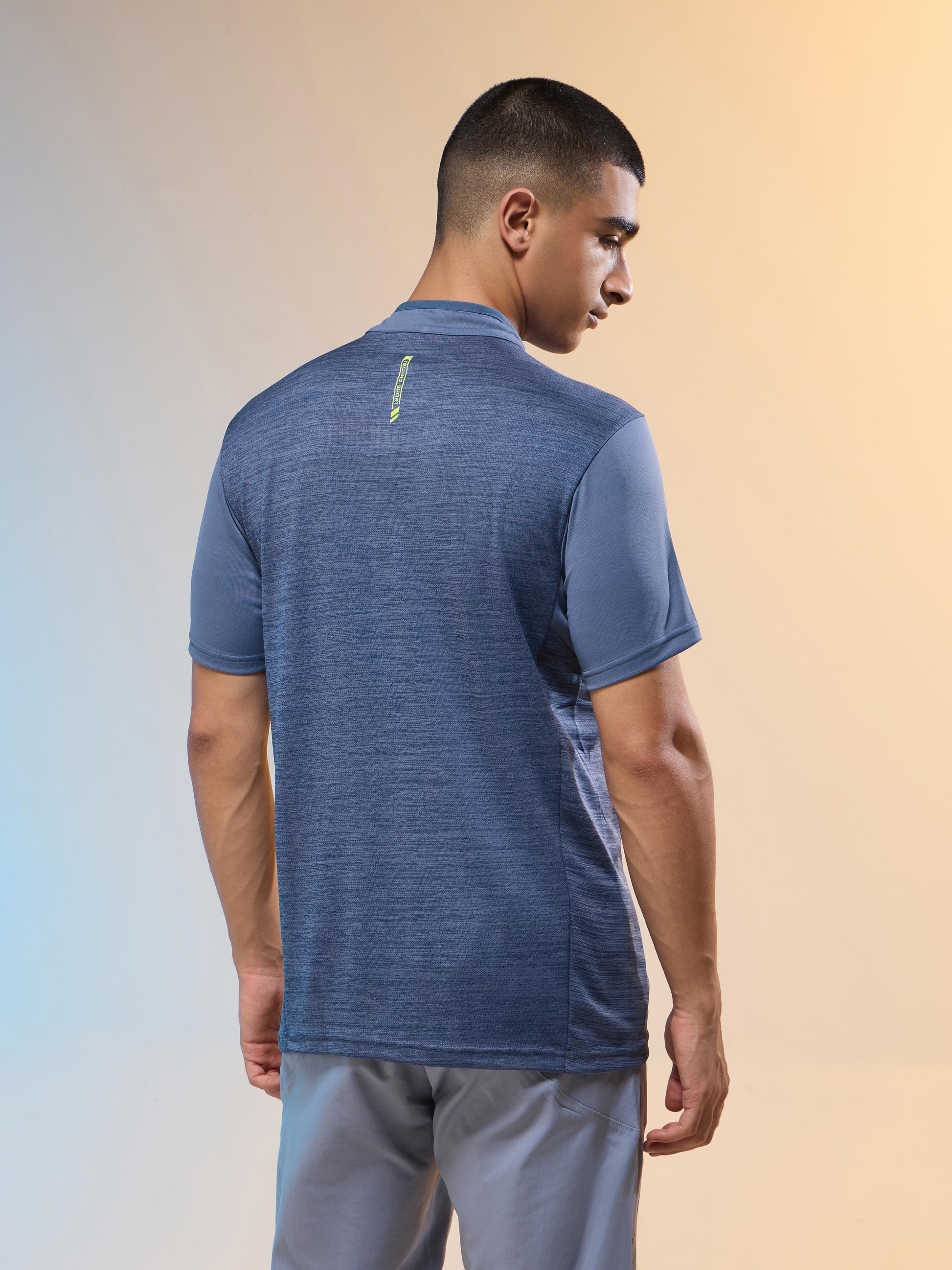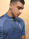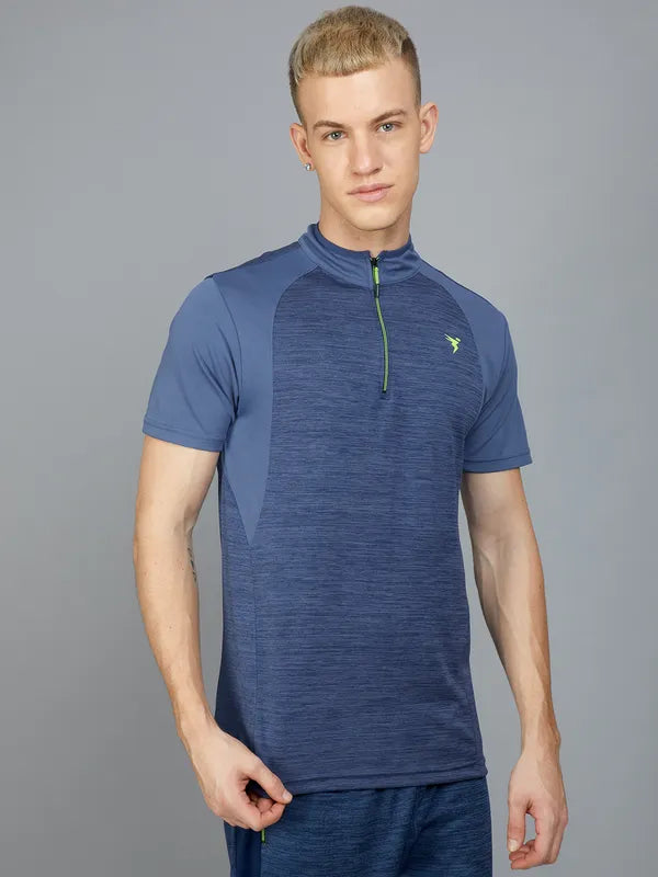 Men Melange Slim Fit Mock Neck T-shirt with TECHNO COOL+