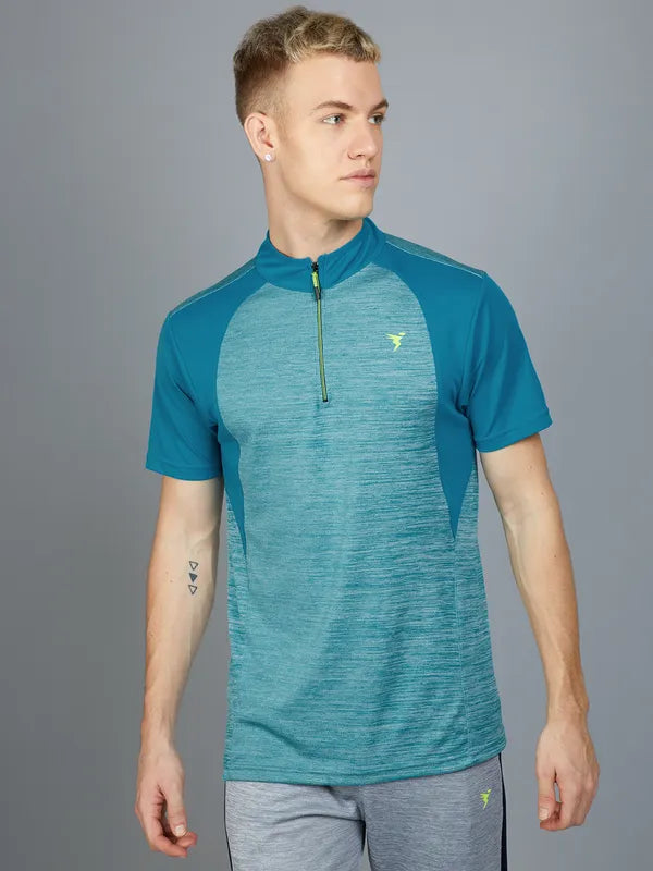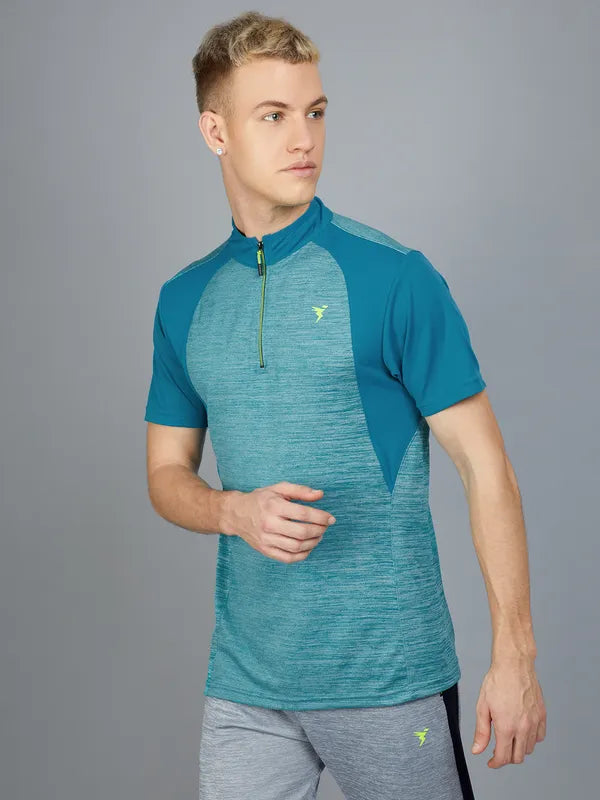 Offer Valid on a Minimum Cart Value of ₹999Men Melange Slim Fit Mock Neck T-shirt with TECHNO COOL+