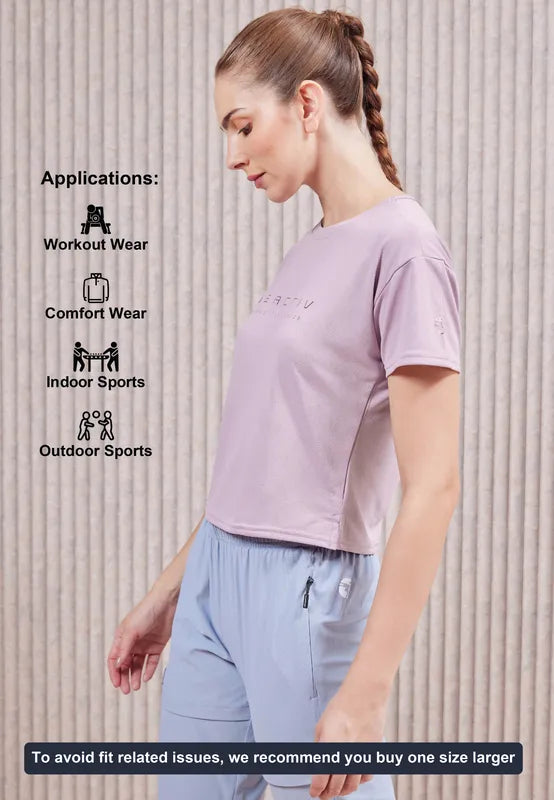 Offer Valid on a Minimum Cart Value of ₹999Women Printed Boxy Fit Crew Neck Crop Top with VENTMESH
