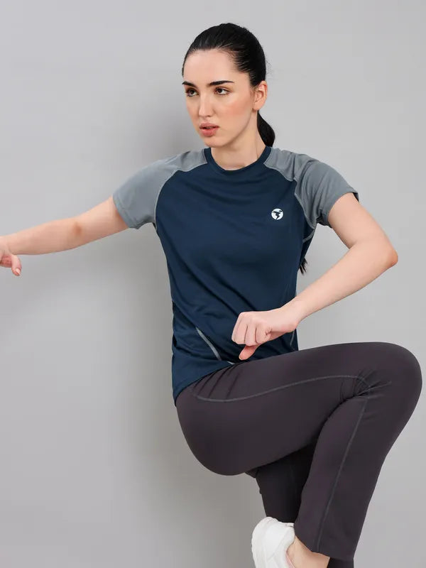Offer Valid on a Minimum Cart Value of ₹999Women Colorblock Slim Fit Crew Neck T-shirt with TECHNO COOL+