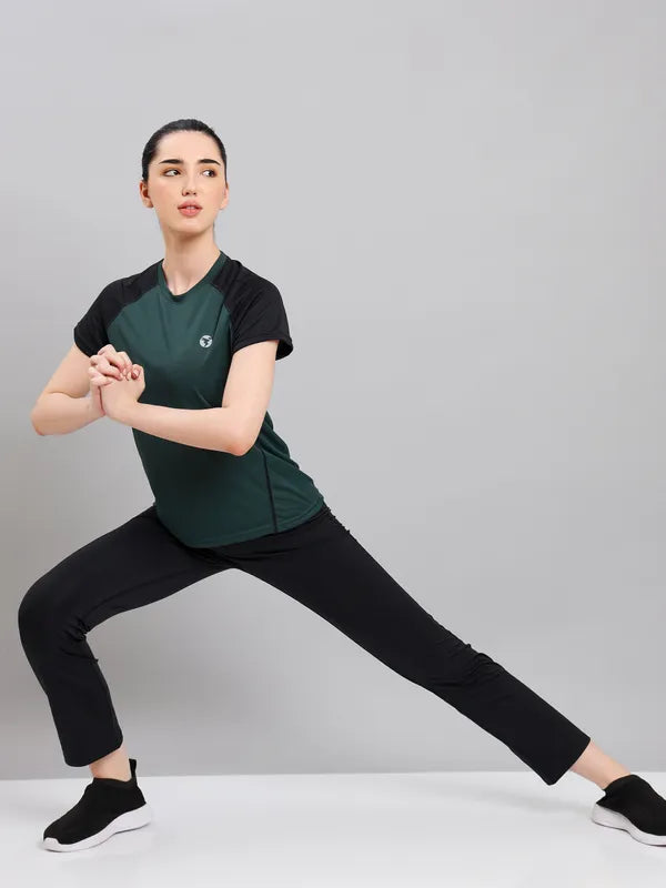 Women Colorblock Slim Fit Crew Neck T-shirt with TECHNO COOL+