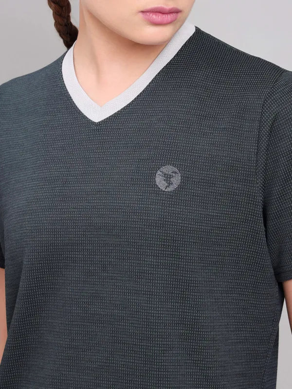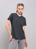 Offer Valid on a Minimum Cart Value of ₹999Women Solid Slim Fit V Neck T-shirt with DOUBLE COOL