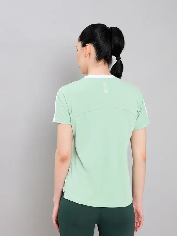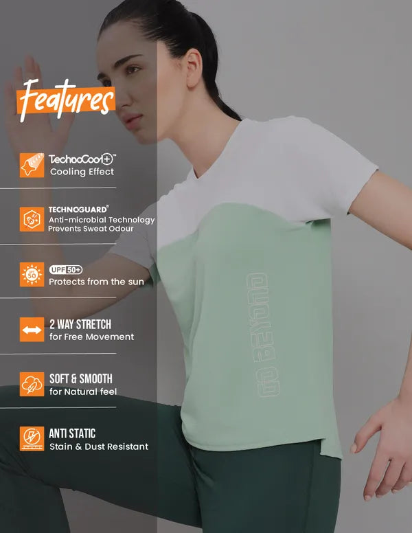 Offer Valid on a Minimum Cart Value of ₹999Women Colorblock Slim Fit Crew Neck T-shirt with TECHNO COOL+
