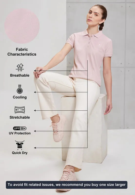 Indulge in supreme comfort with our Women's Polo Active T-Shirt featuring MATPIQ, a super-soft pique fabric with subtle texture. Enjoy UPF50+ sun protection, ODOURFREE freshness, TECHNOGUARD anti-microbial shield, 2-Way Stretch for freedom of movement, Soft & Smooth touch, and Anti Static technology. Embrace natural feel and unmatched style