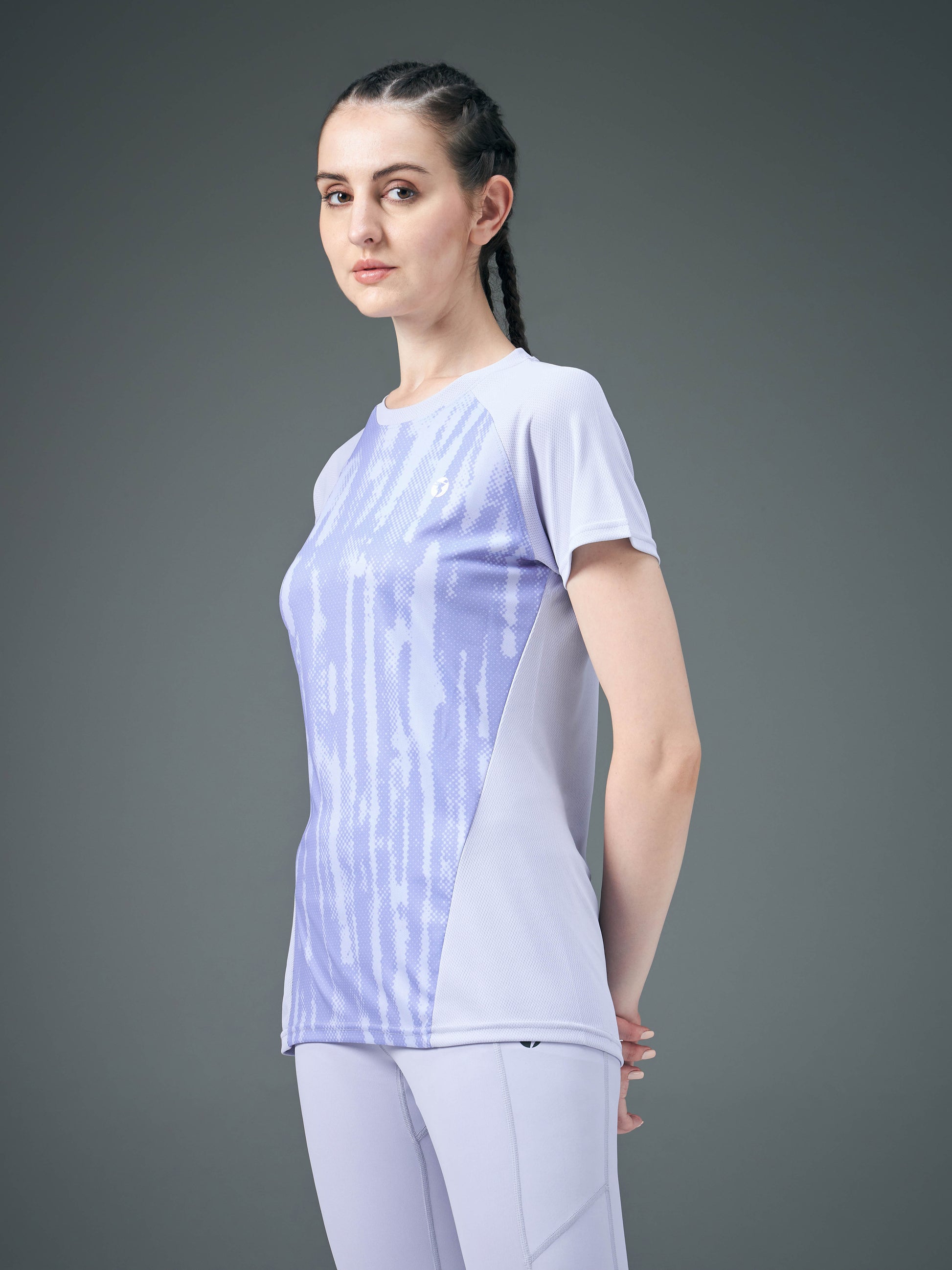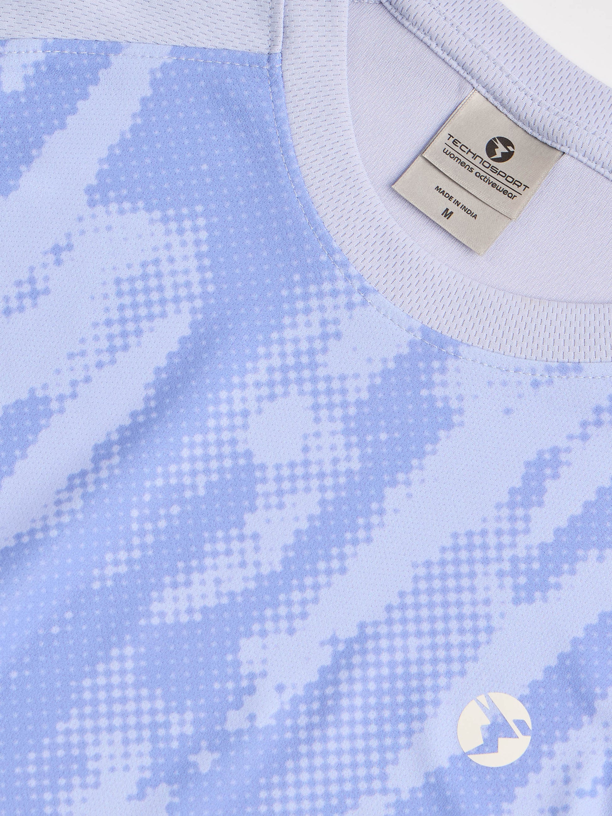 Women Abstract Print Slim Fit Crew Neck T-shirt with TECHNO COOL+