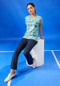 Offer Valid on a Minimum Cart Value of ₹999Women Abstract Print Slim Fit Crew Neck T-shirt with TECHNO COOL+