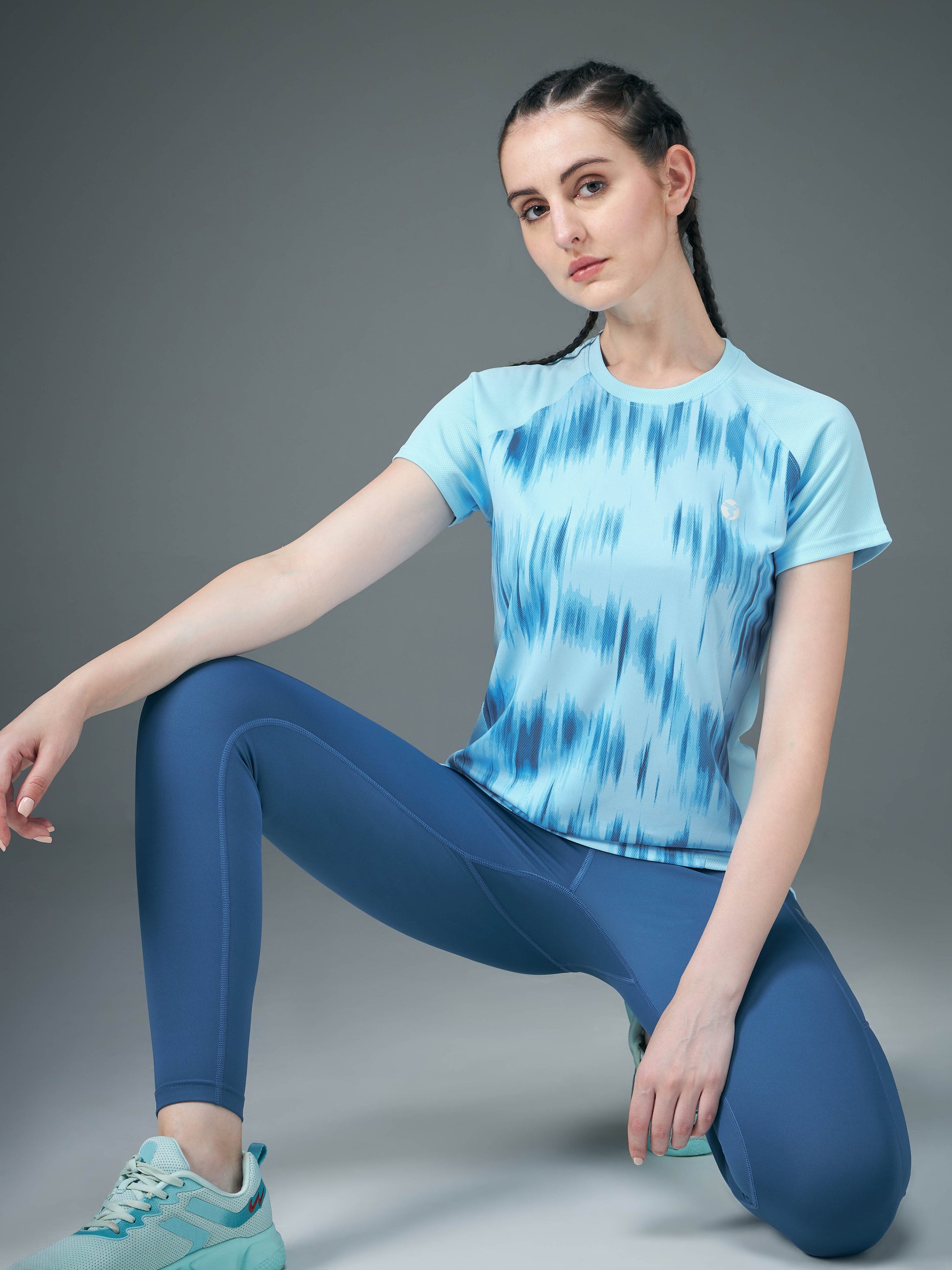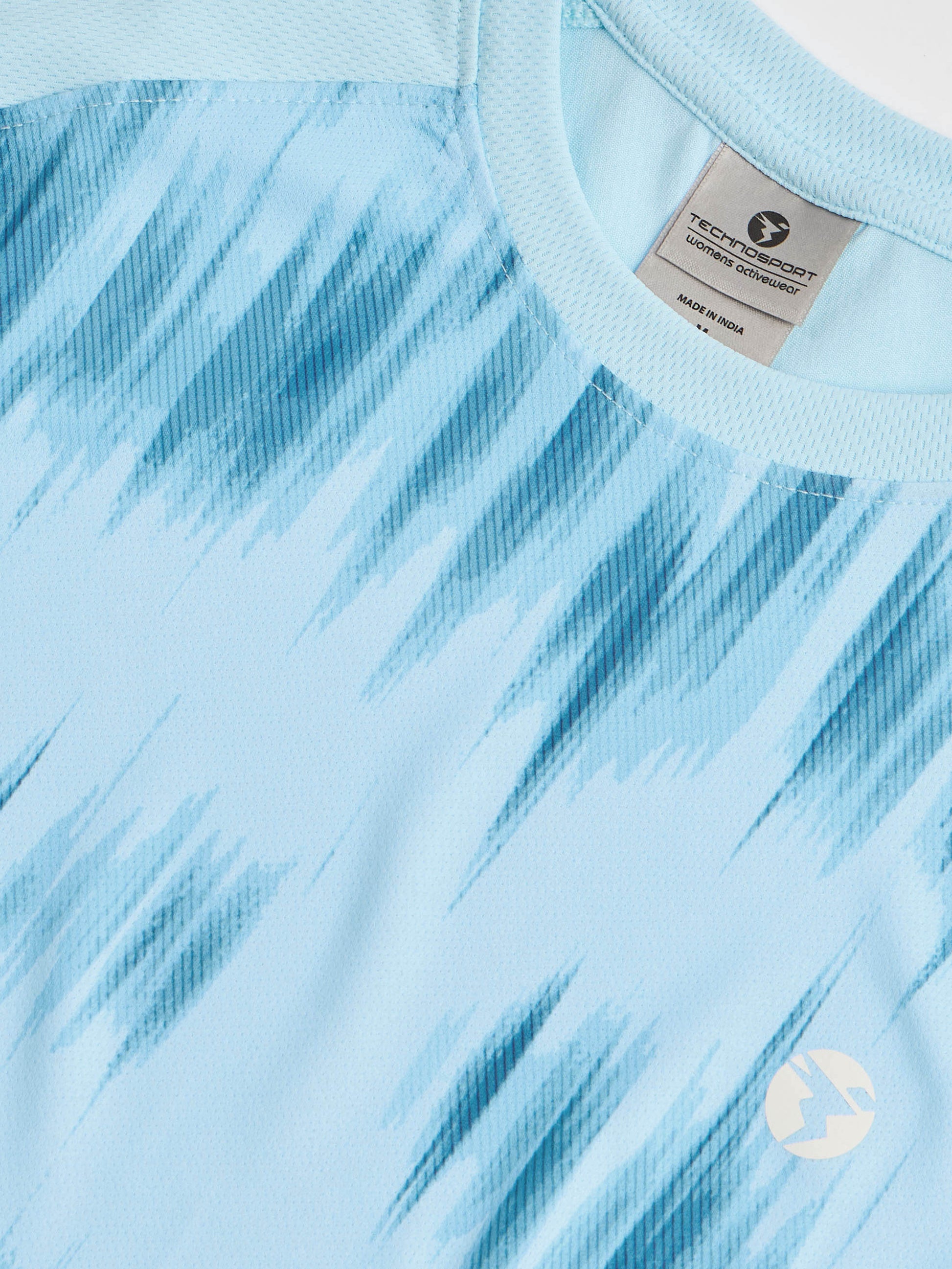 Women Abstract Print Slim Fit Crew Neck T-shirt with TECHNO COOL+