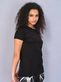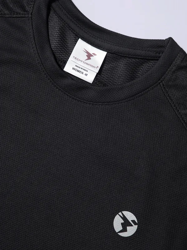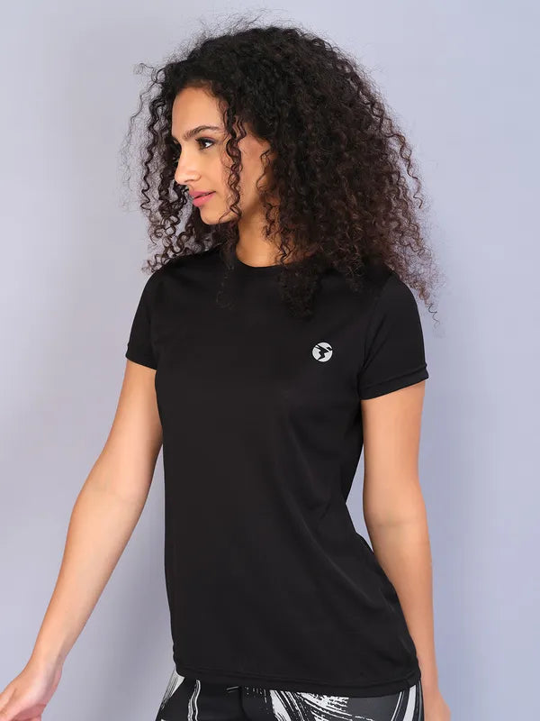 Women Solid Slim Fit Crew Neck T-shirt with TECHNO COOL