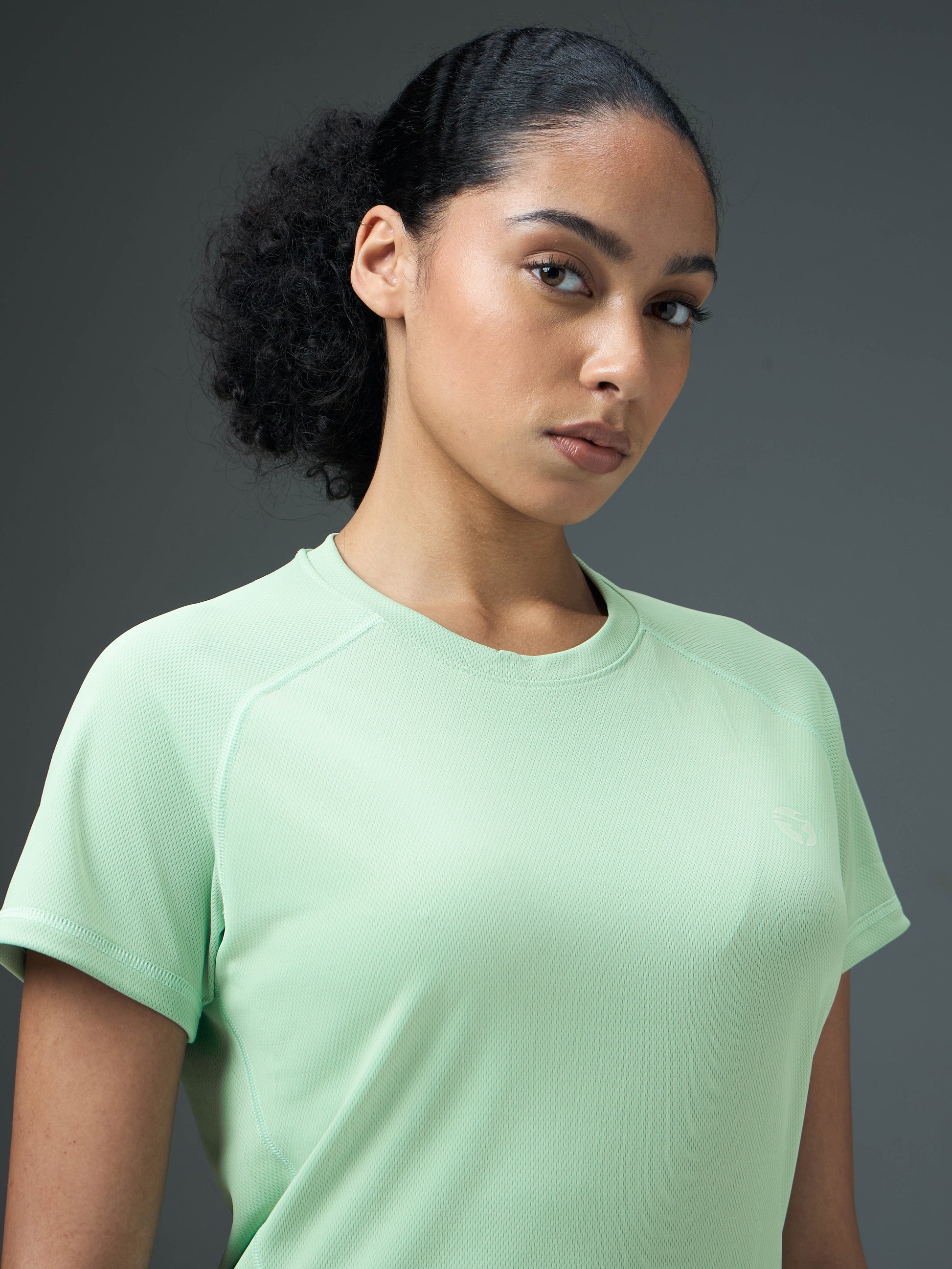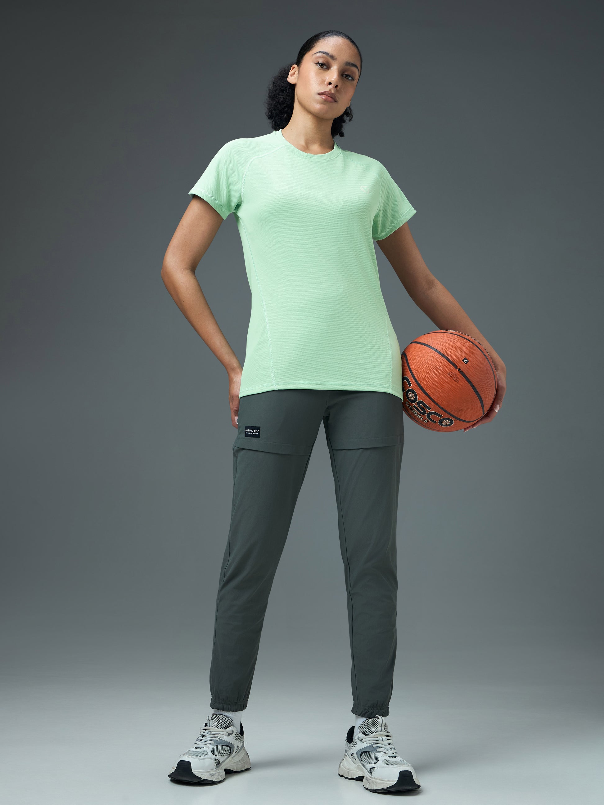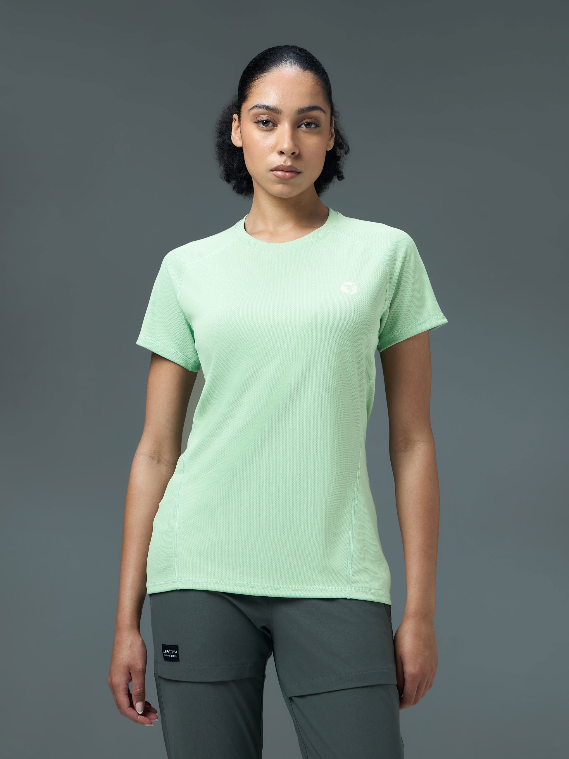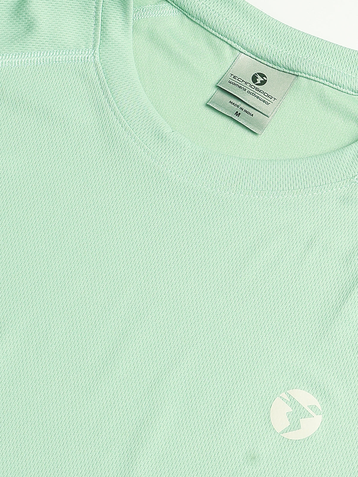 Women Solid Slim Fit Crew Neck T-shirt with TECHNO COOL