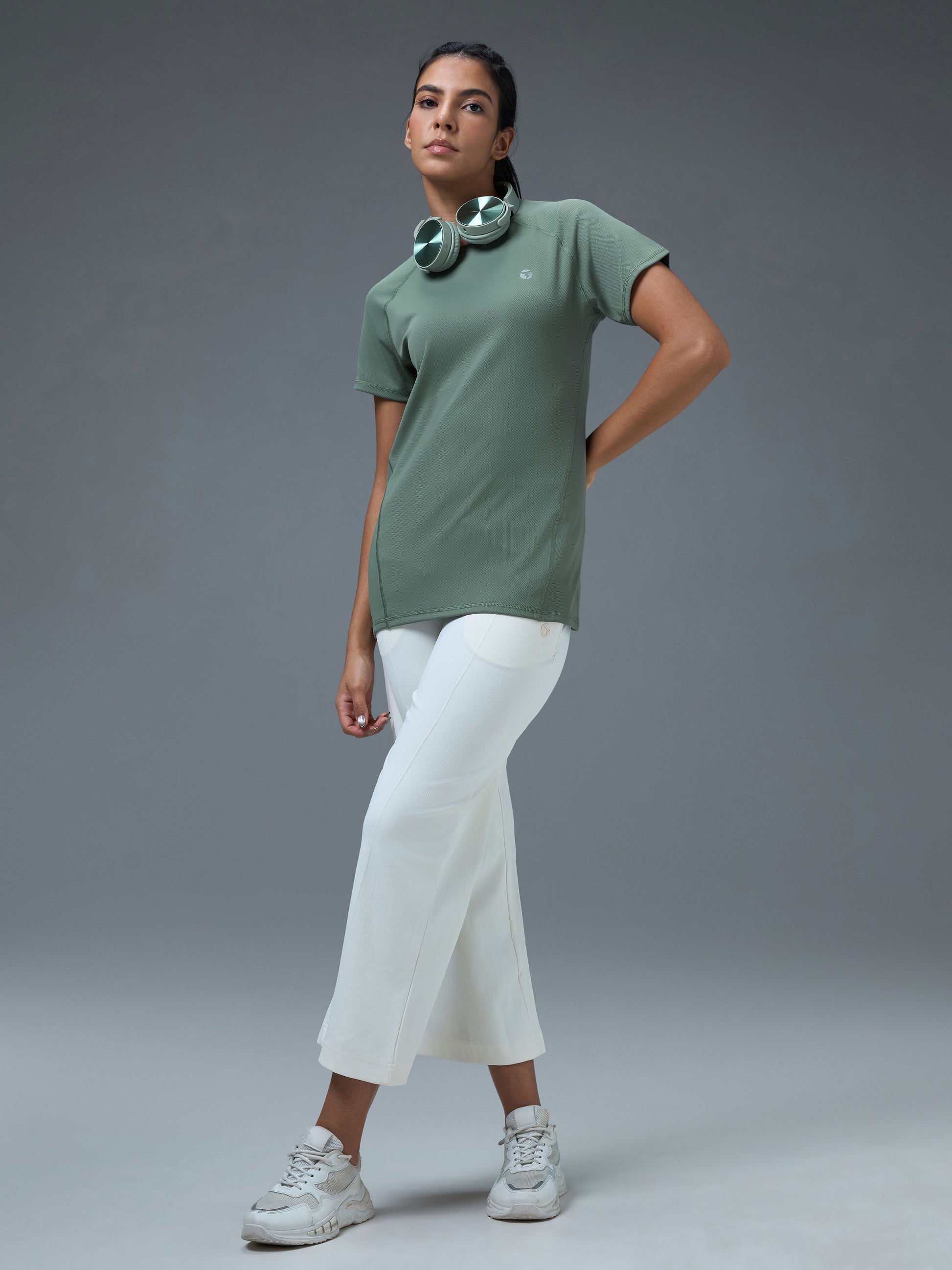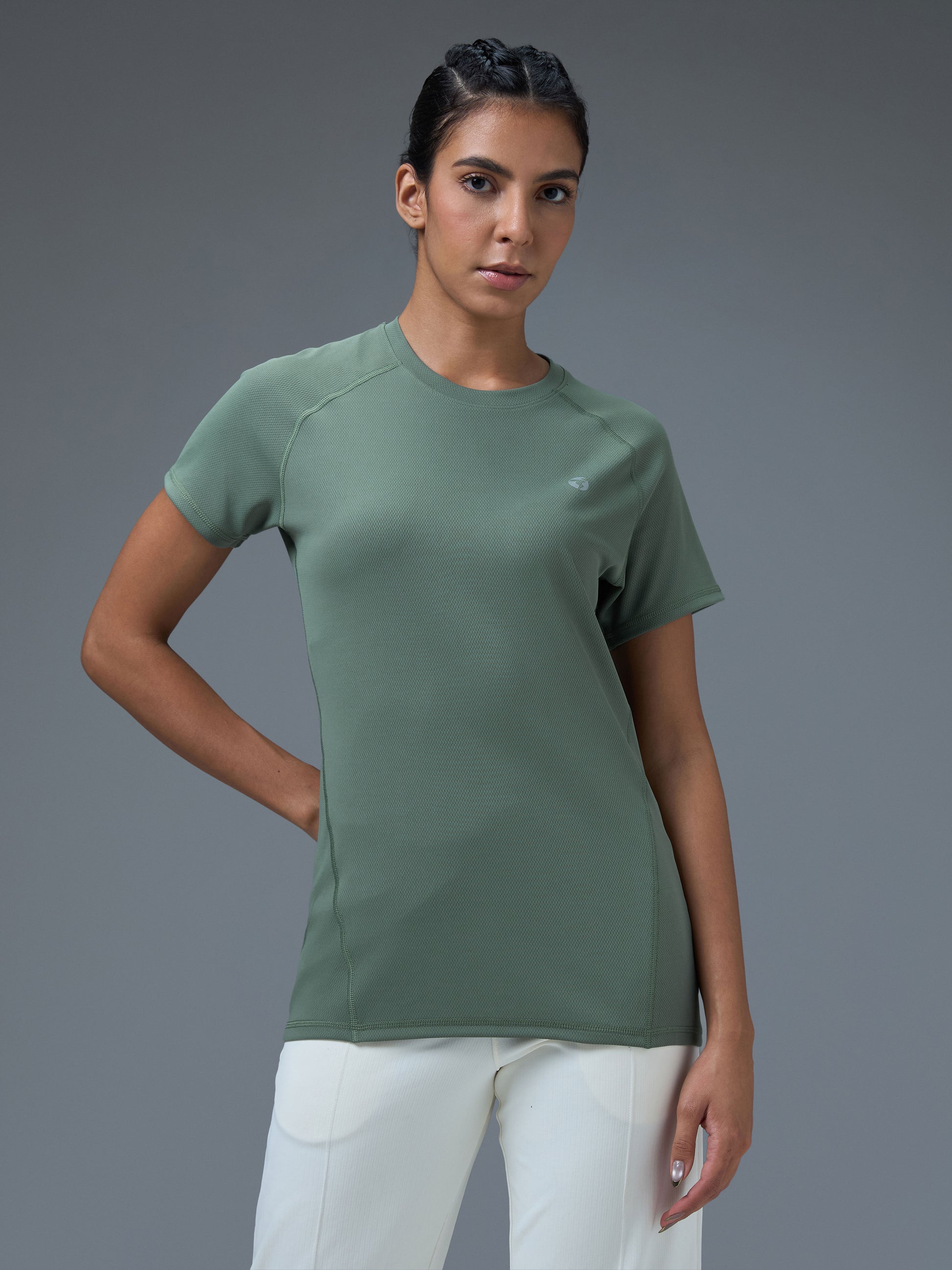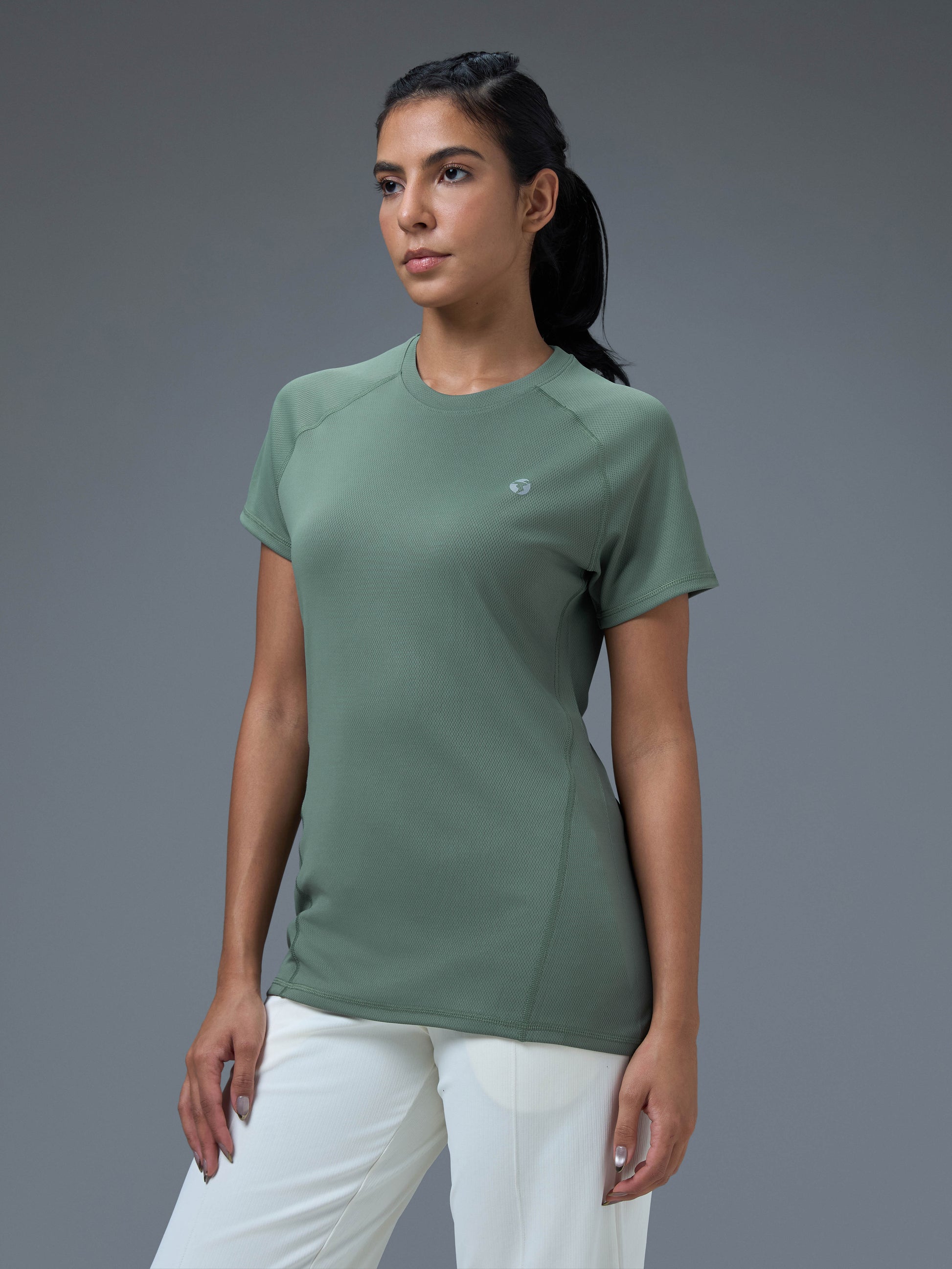 Offer Valid on a Minimum Cart Value of ₹999Women Solid Slim Fit Crew Neck T-shirt with TECHNO COOL