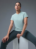 Women Solid Slim Fit Crew Neck T-shirt with TECHNO COOL