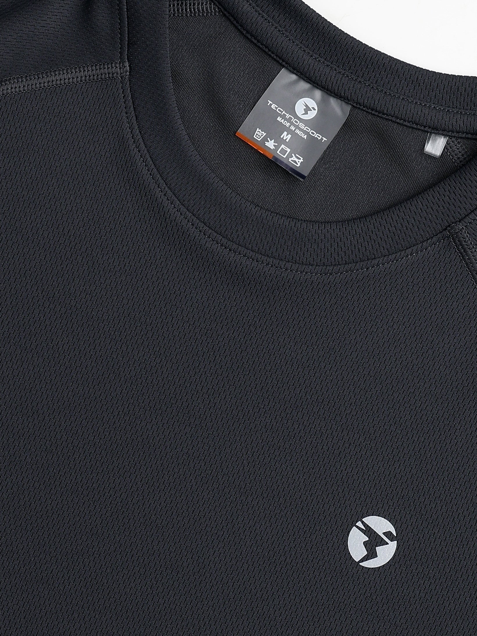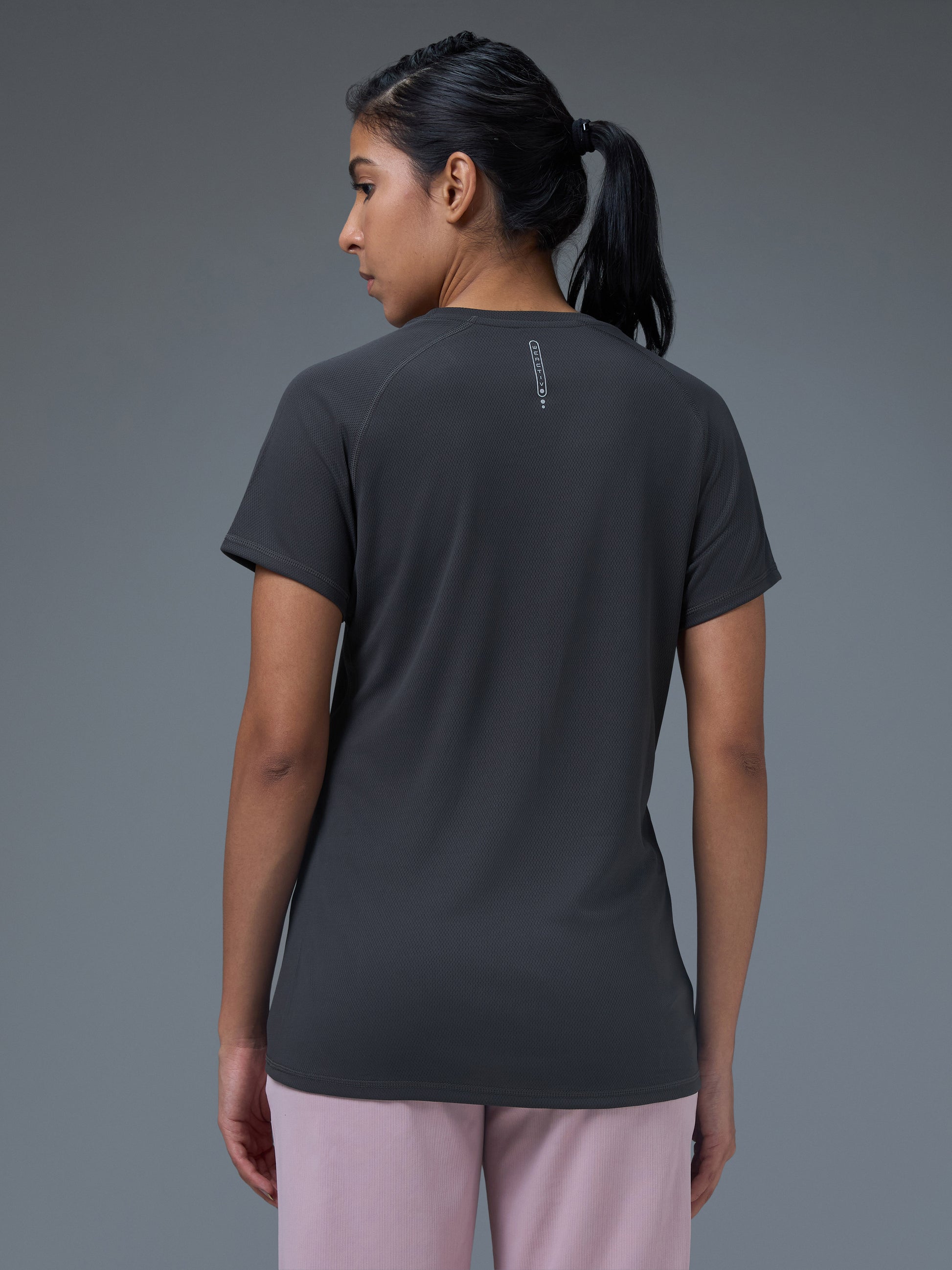 Women Solid Slim Fit Crew Neck T-shirt with TECHNO COOL
