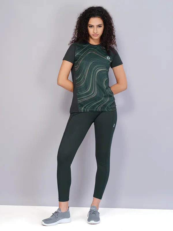 Women Printed Slim Fit Crew Neck T-shirt with TECHNO COOL