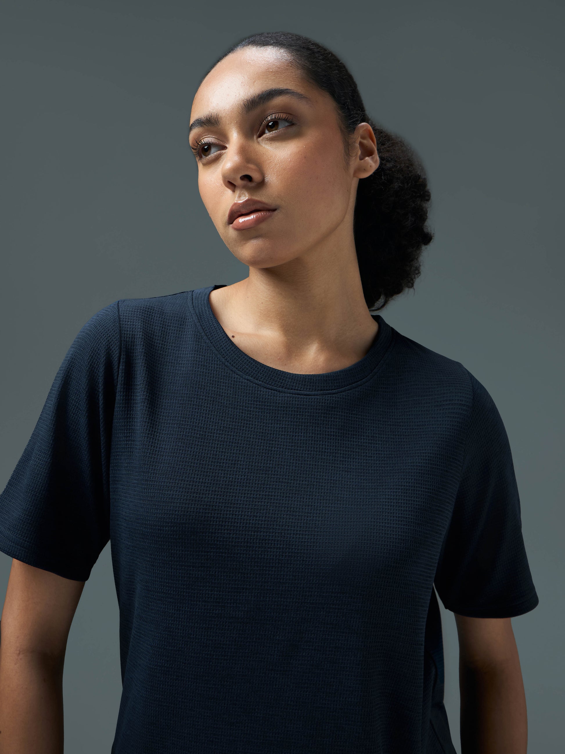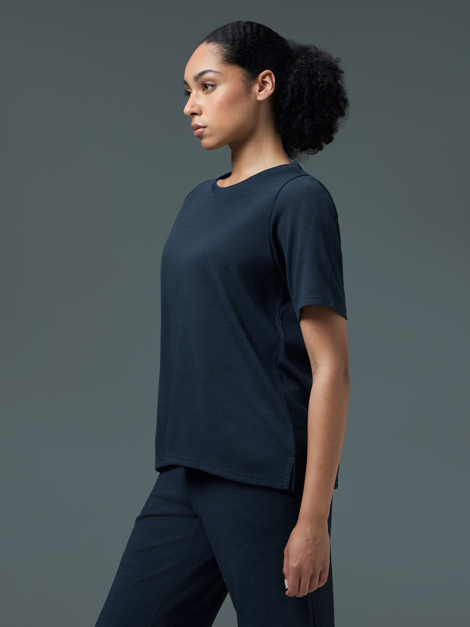 Women Cubic Melange Relaxed Fit Round Neck T-shirt with DOUBLE COOL