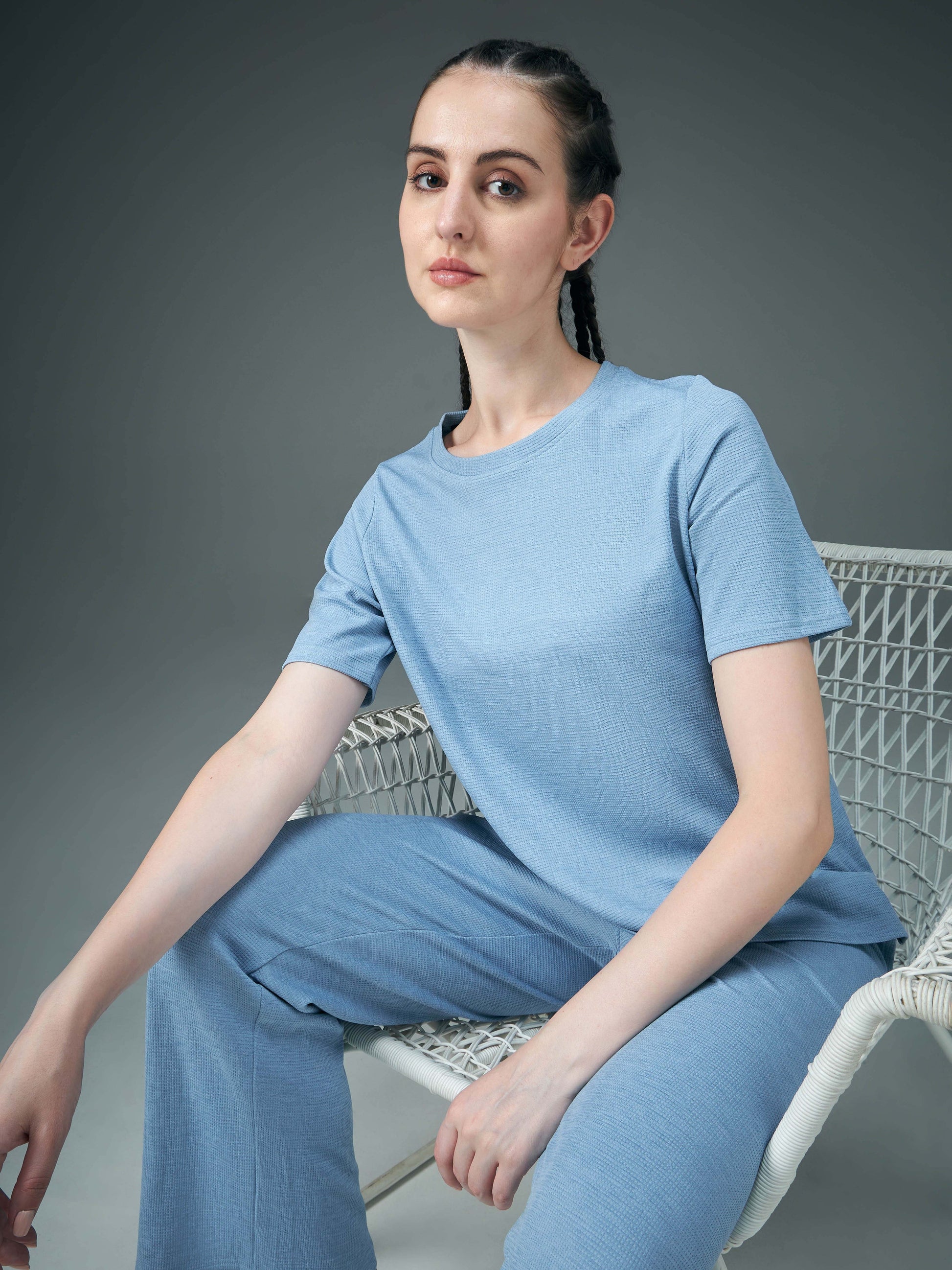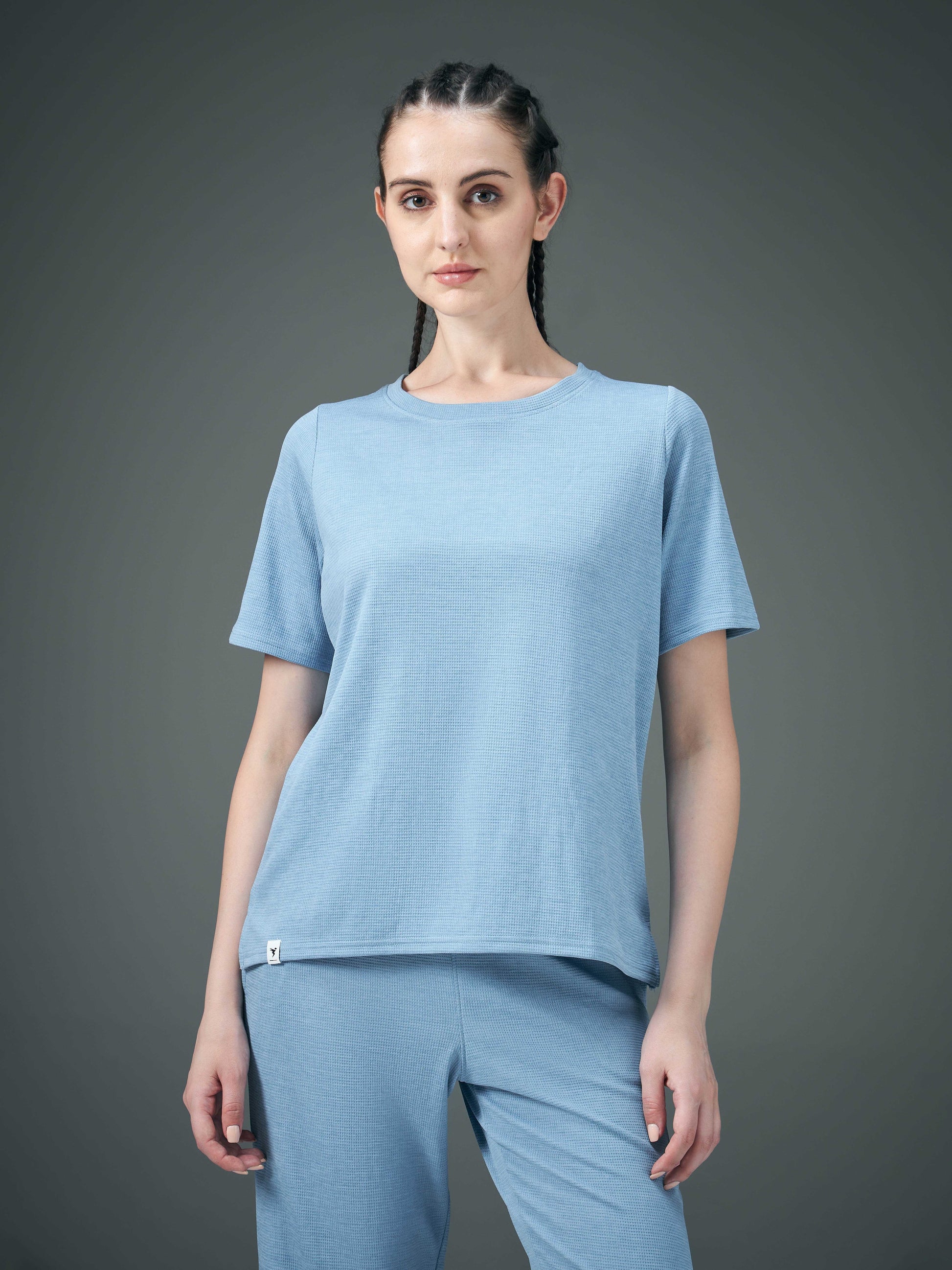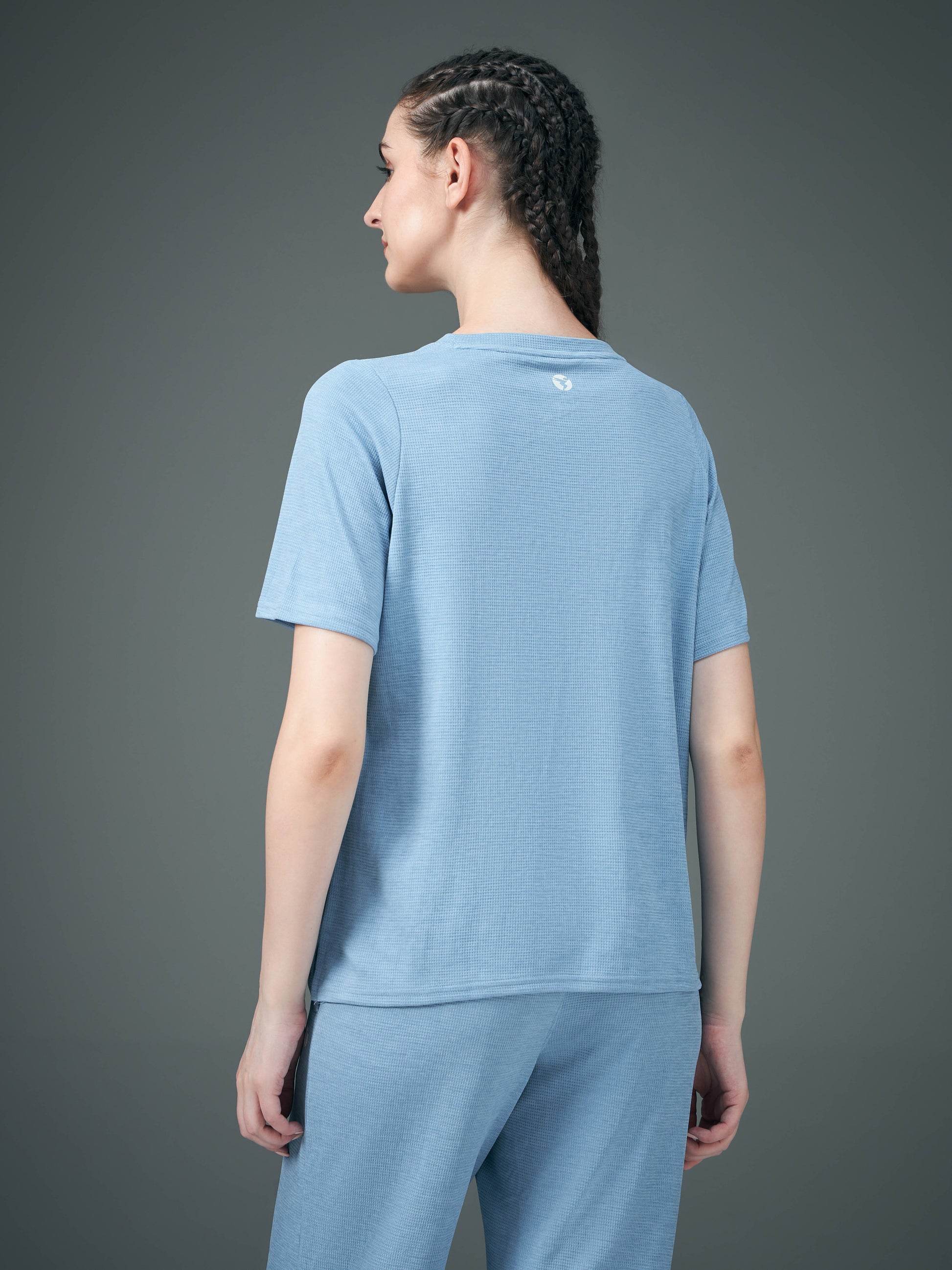 Offer Valid on a Minimum Cart Value of ₹999Women Cubic Melange Relaxed Fit Round Neck T-shirt with DOUBLE COOL
