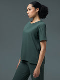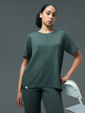 Women Cubic Melange Relaxed Fit Round Neck T-shirt with DOUBLE COOL