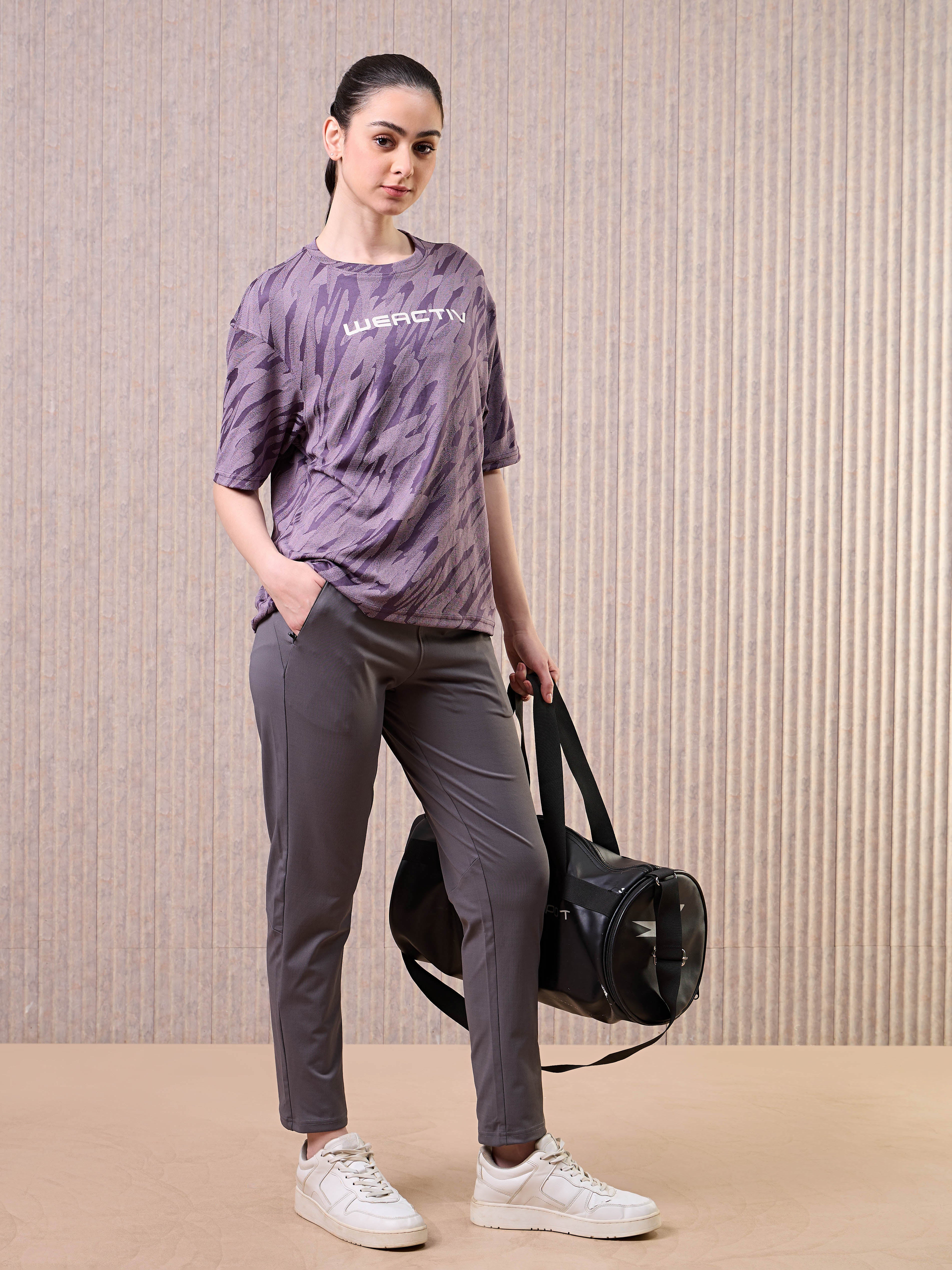 Women Jacquard Boxy Fit Round Neck T-shirt with DOUBLE COOL