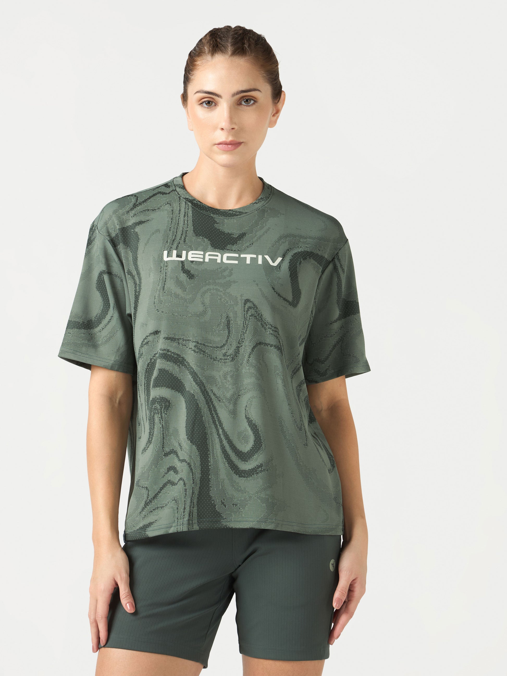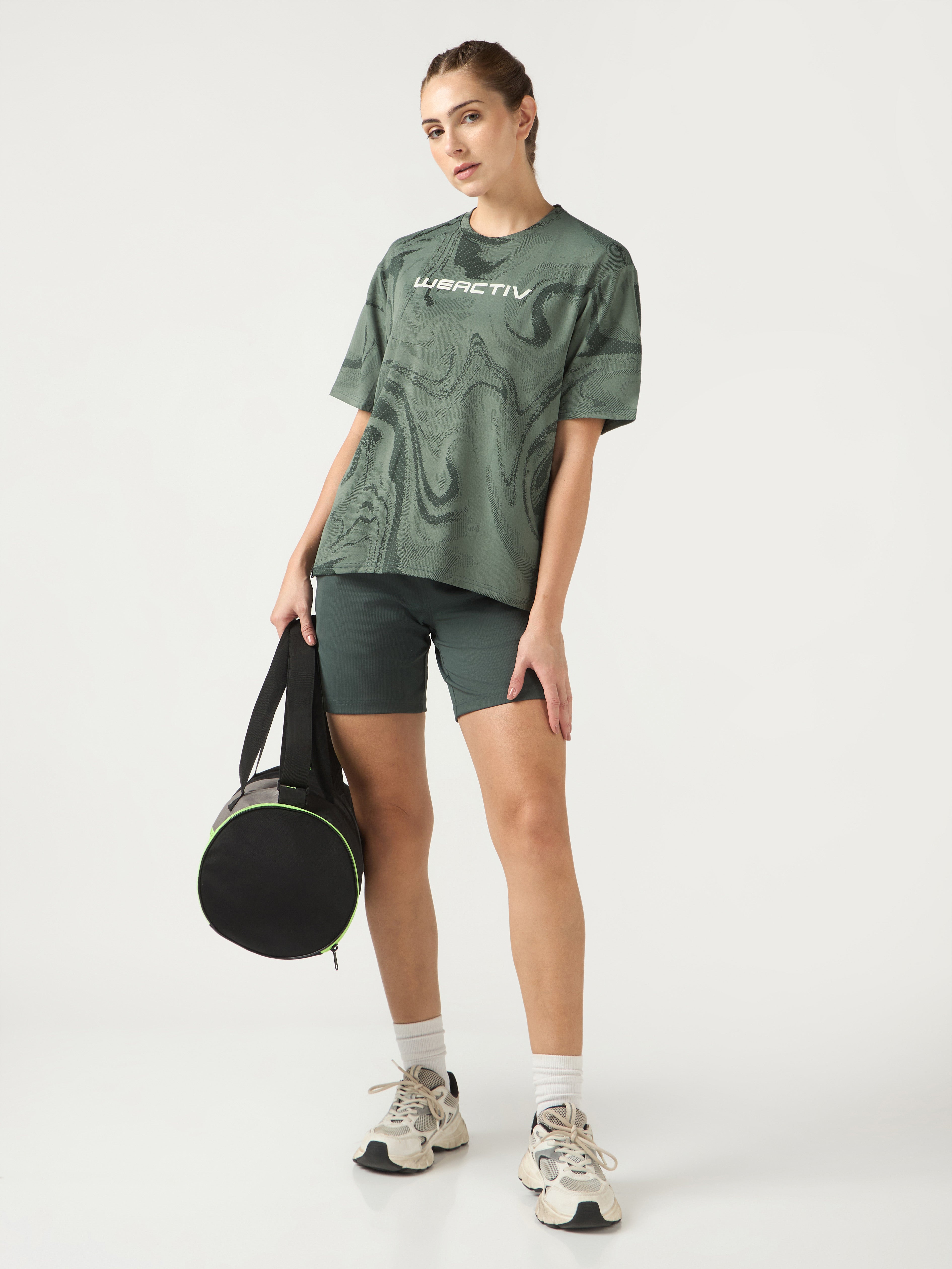 Offer Valid on a Minimum Cart Value of ₹999Women Jacquard Boxy Fit Round Neck T-shirt with DOUBLE COOL