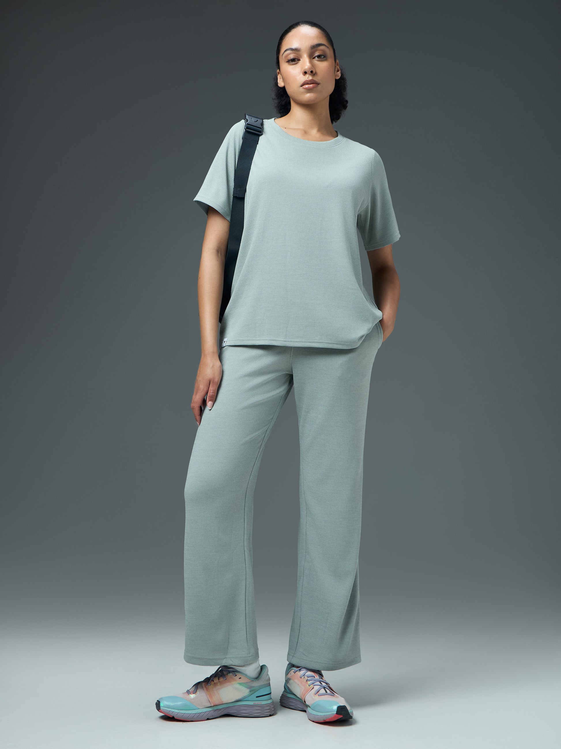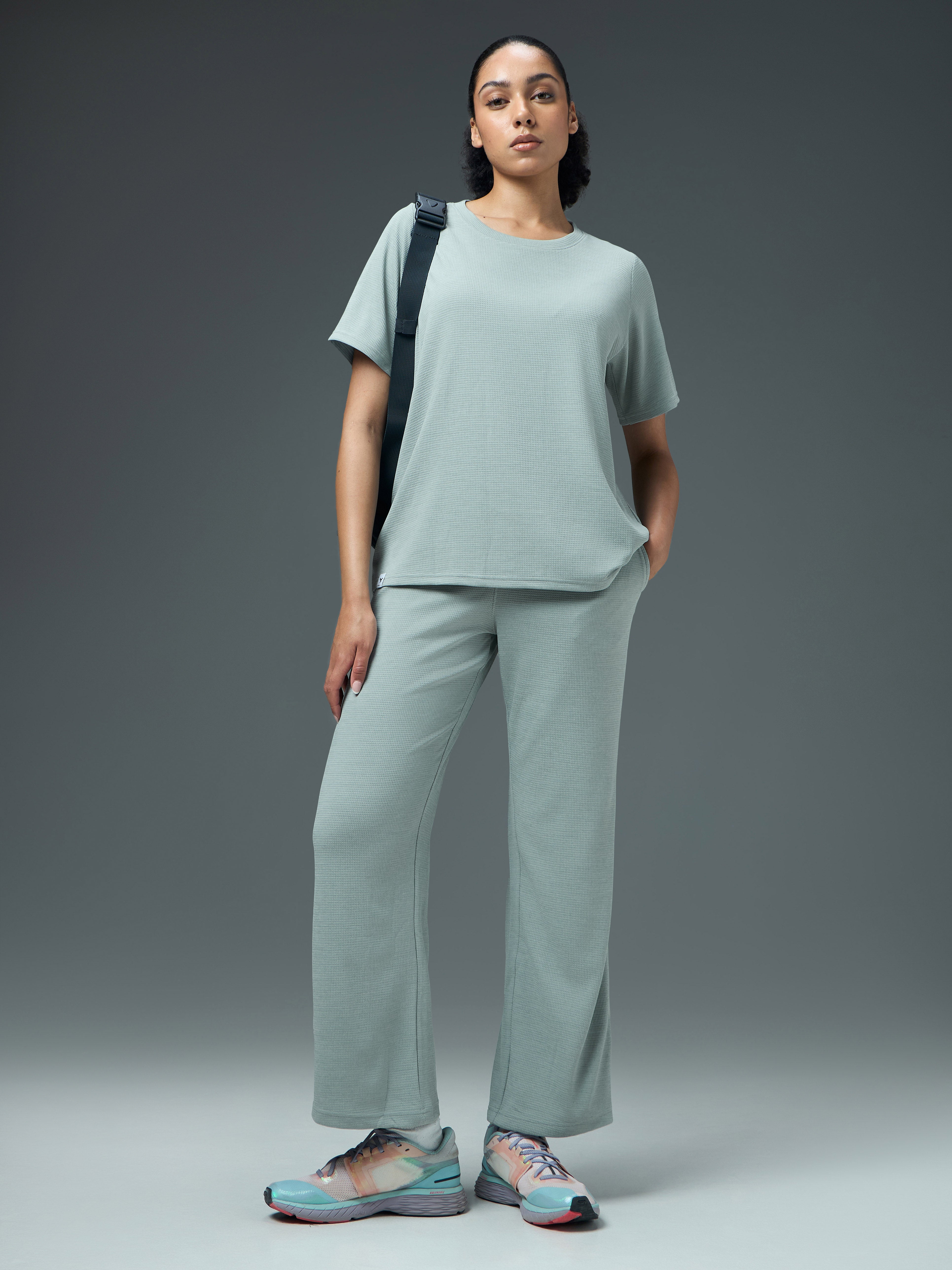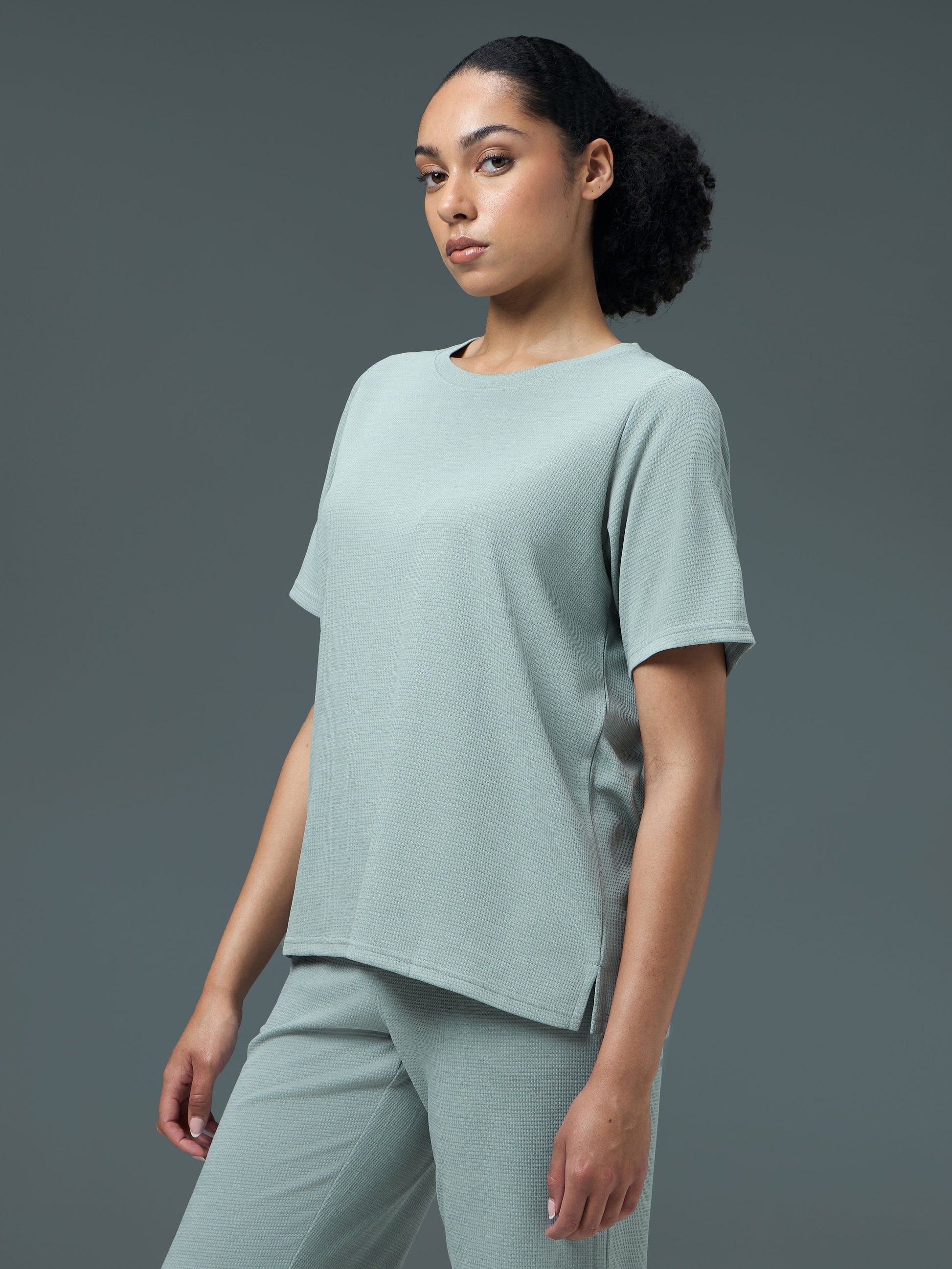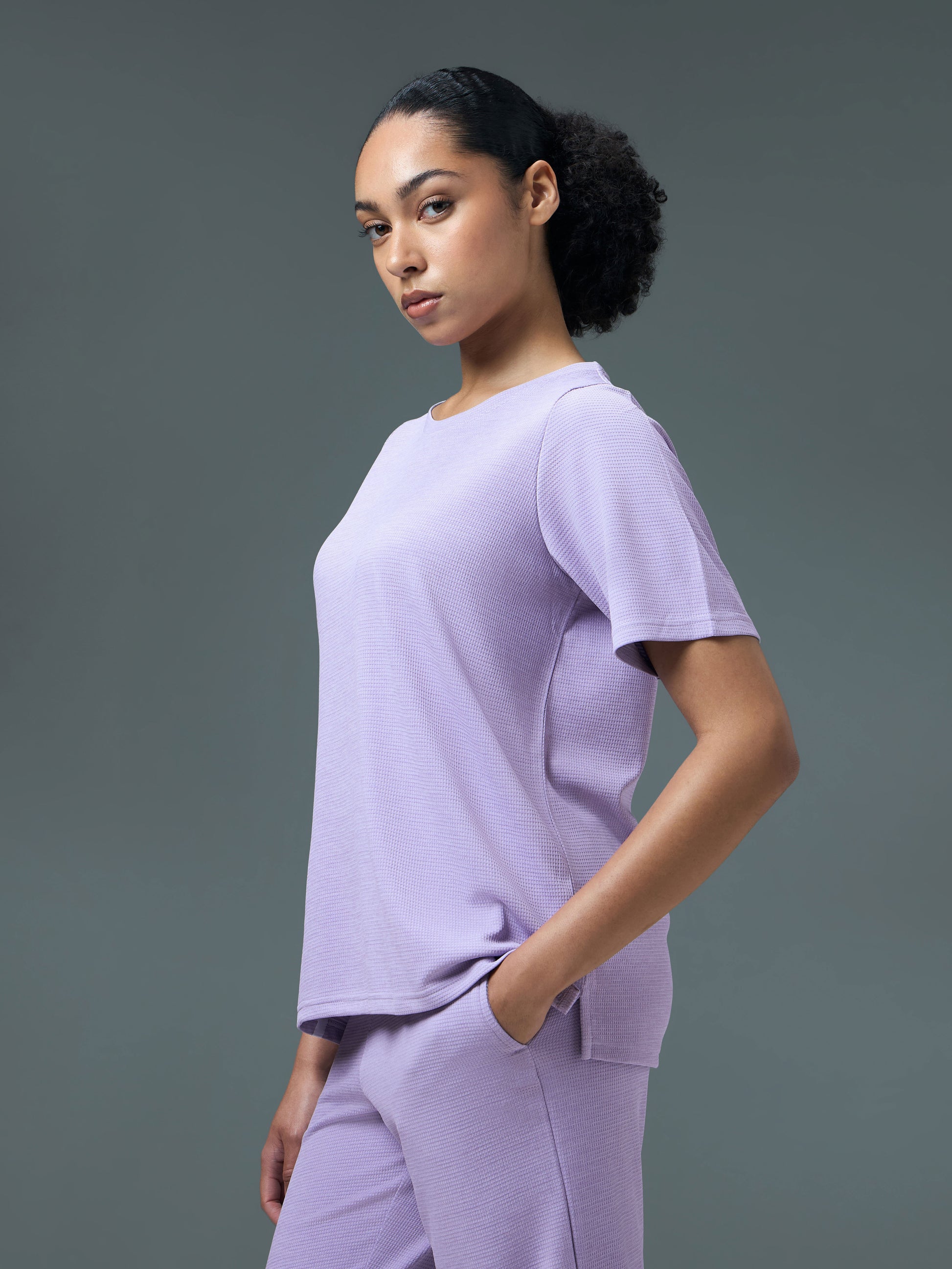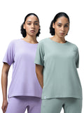Offer Valid on a Minimum Cart Value of ₹999Women Pack of 2 Relaxed Fit Cubic Melange Round Neck T-shirt with DOUBLE COOL