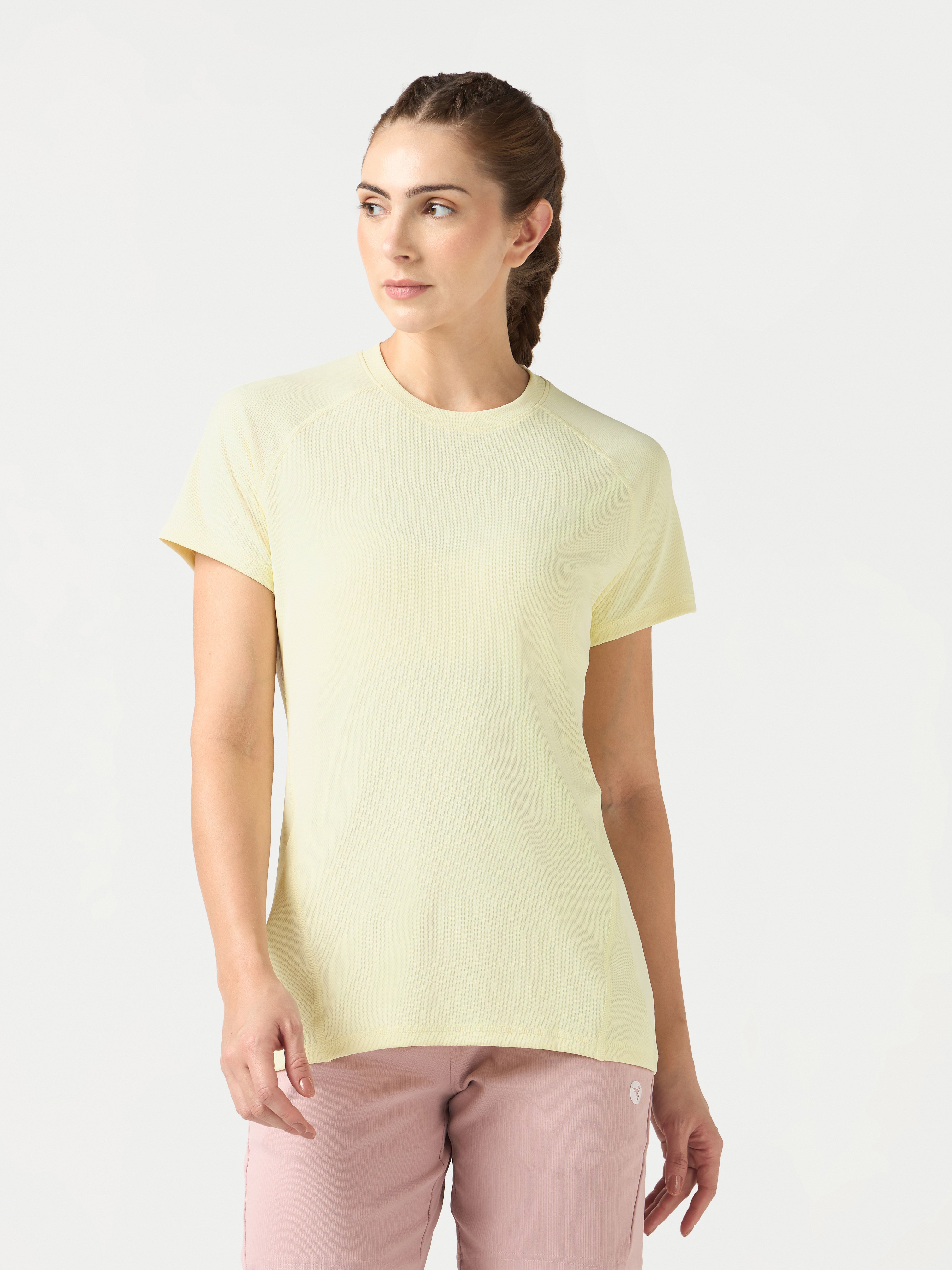 Experience peak comfort and style in our Women's Active T-Shirt. Infused with TechnoCool for a cool feel, Technoguard for freshness, UPF50+ sun protection, 2-Way Stretch for flexibility, Soft & Smooth touch, and Anti Static technology for all-day comfort. Elevate your active wardrobe effortlessly
