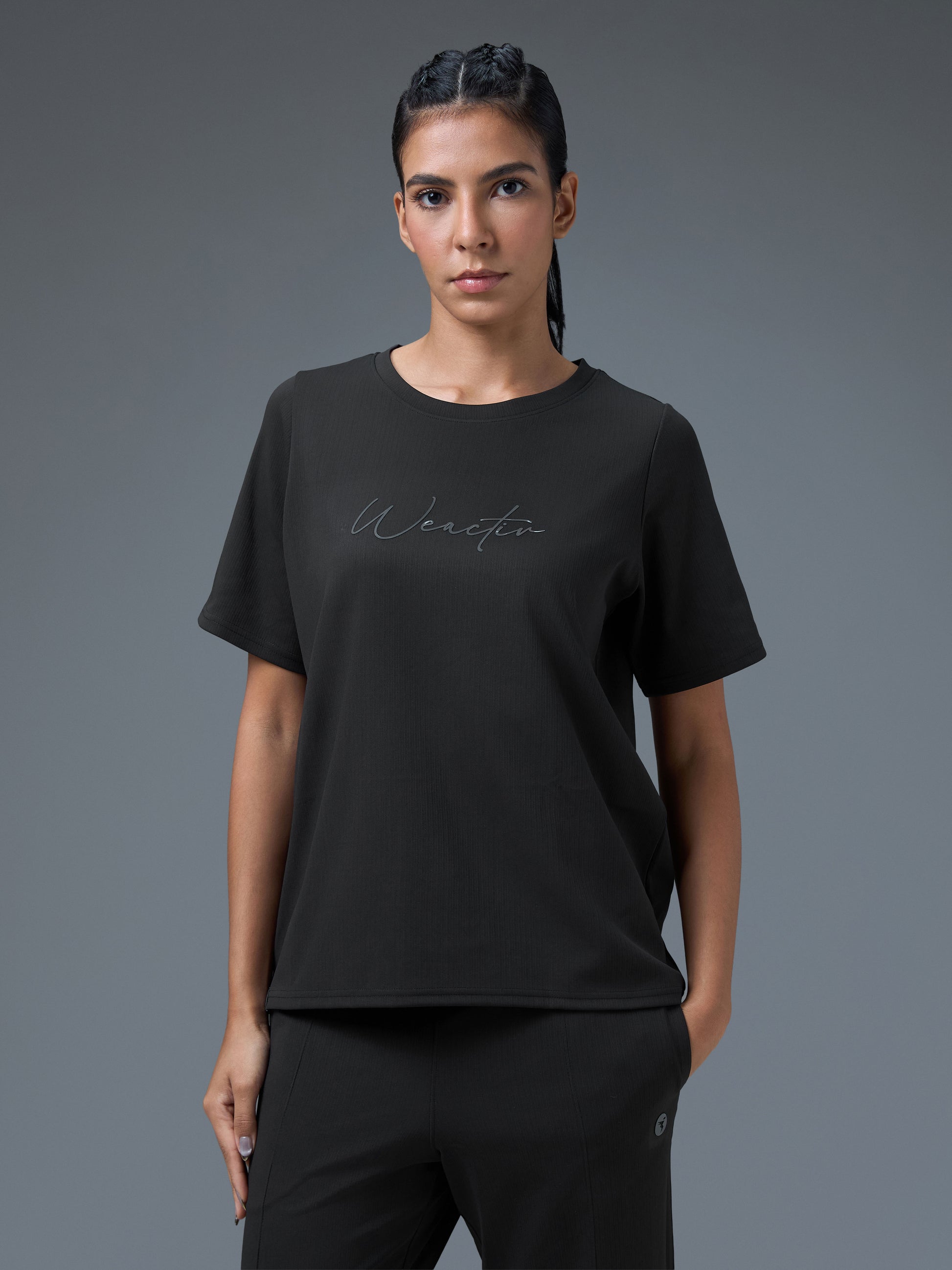 Women Printed Relaxed Fit Round Neck Sports Tee with ELASTO PLUS