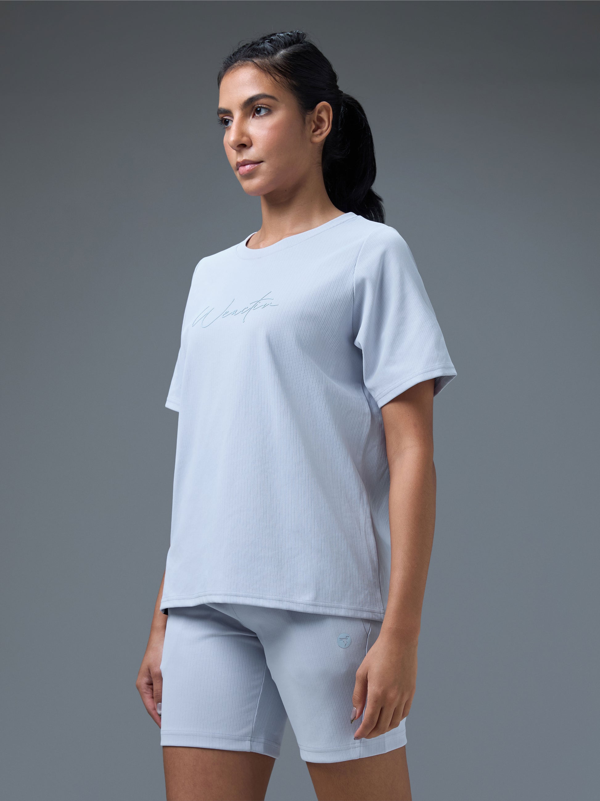 Offer Valid on a Minimum Cart Value of ₹999Women Printed Relaxed Fit Round Neck Sports Tee with ELASTO PLUS