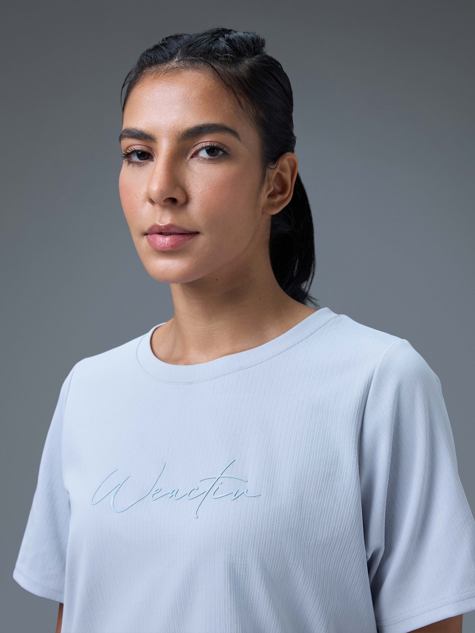 Conquer your workout in style with our Women's Active T-shirt, powered by ELASTO PLUS for stretch, UPF50+ sun protection, ODOURFREE freshness, TECHNOGUARD shield, 4-Way Stretch, and a soft, anti-static finish.