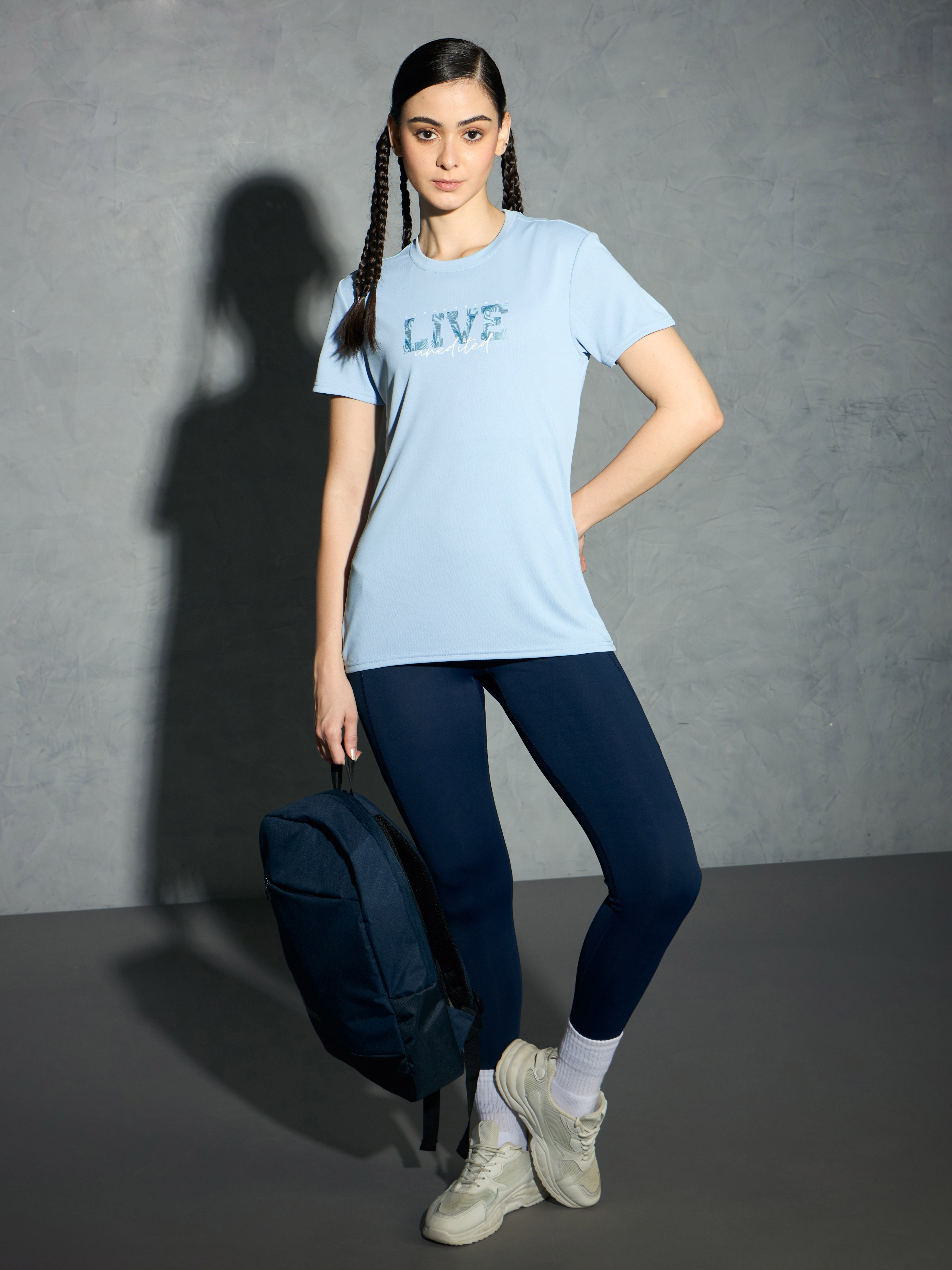 Women Printed Slim Fit Round Neck T-shirt with TECHNOCOOL+
