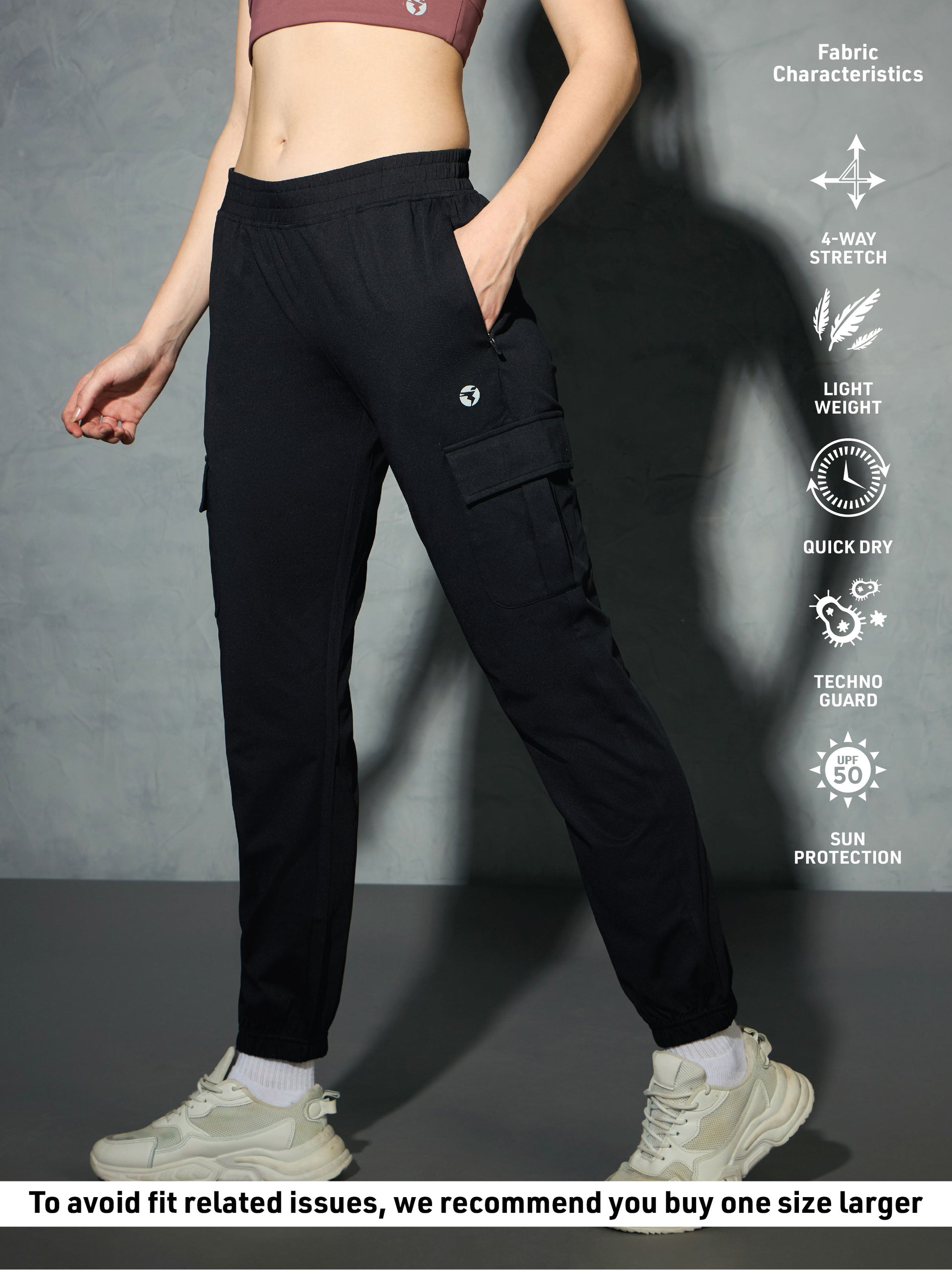 Elevate your style and performance with our Women's Active Cargo Trackpants. Featuring Technoguard for lasting freshness, UPF50+ sun protection, TechnoDry for moisture control, 2-Way Stretch for flexibility, a soft and smooth touch, and Anti-Static technology, these trackpants offer unmatched comfort and functionality for every move.
