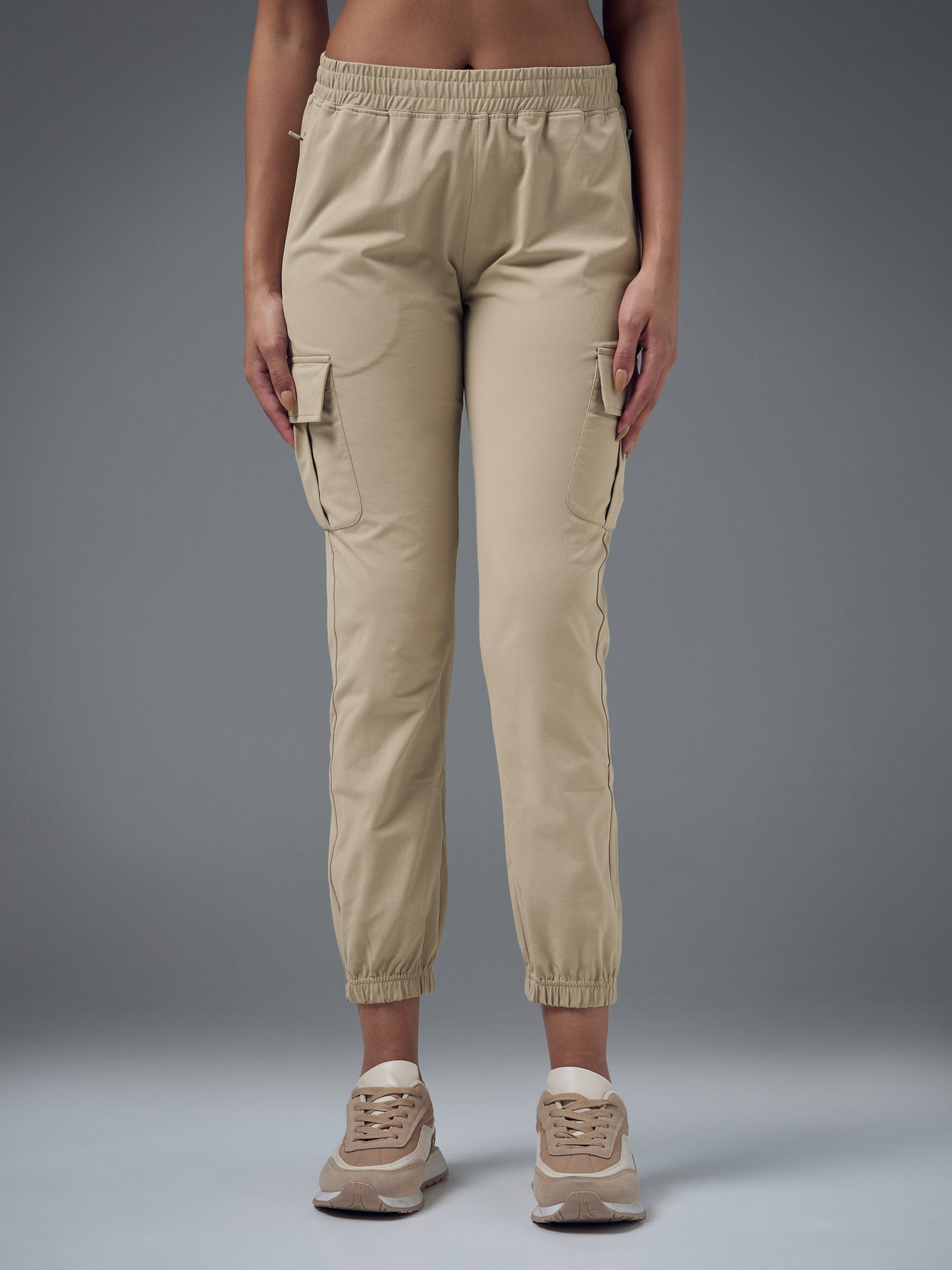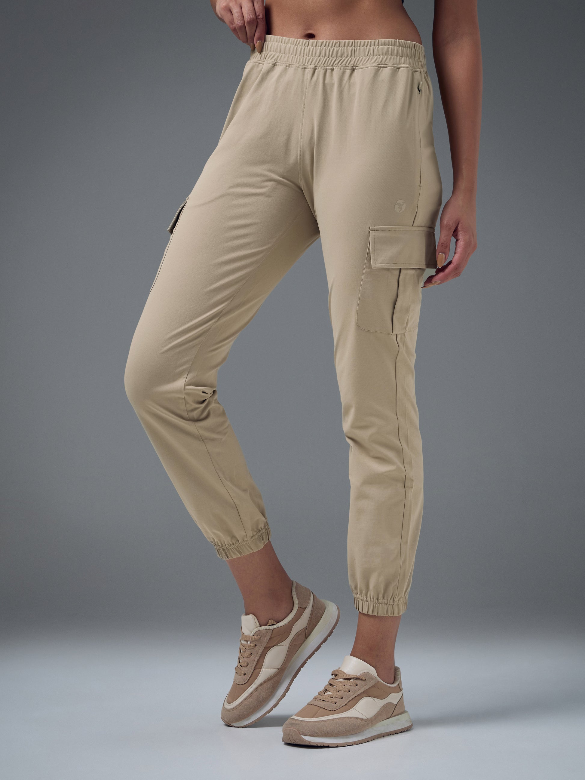 Women Solid Slim Fit Cargo Trackpants with TECHNO GUARD