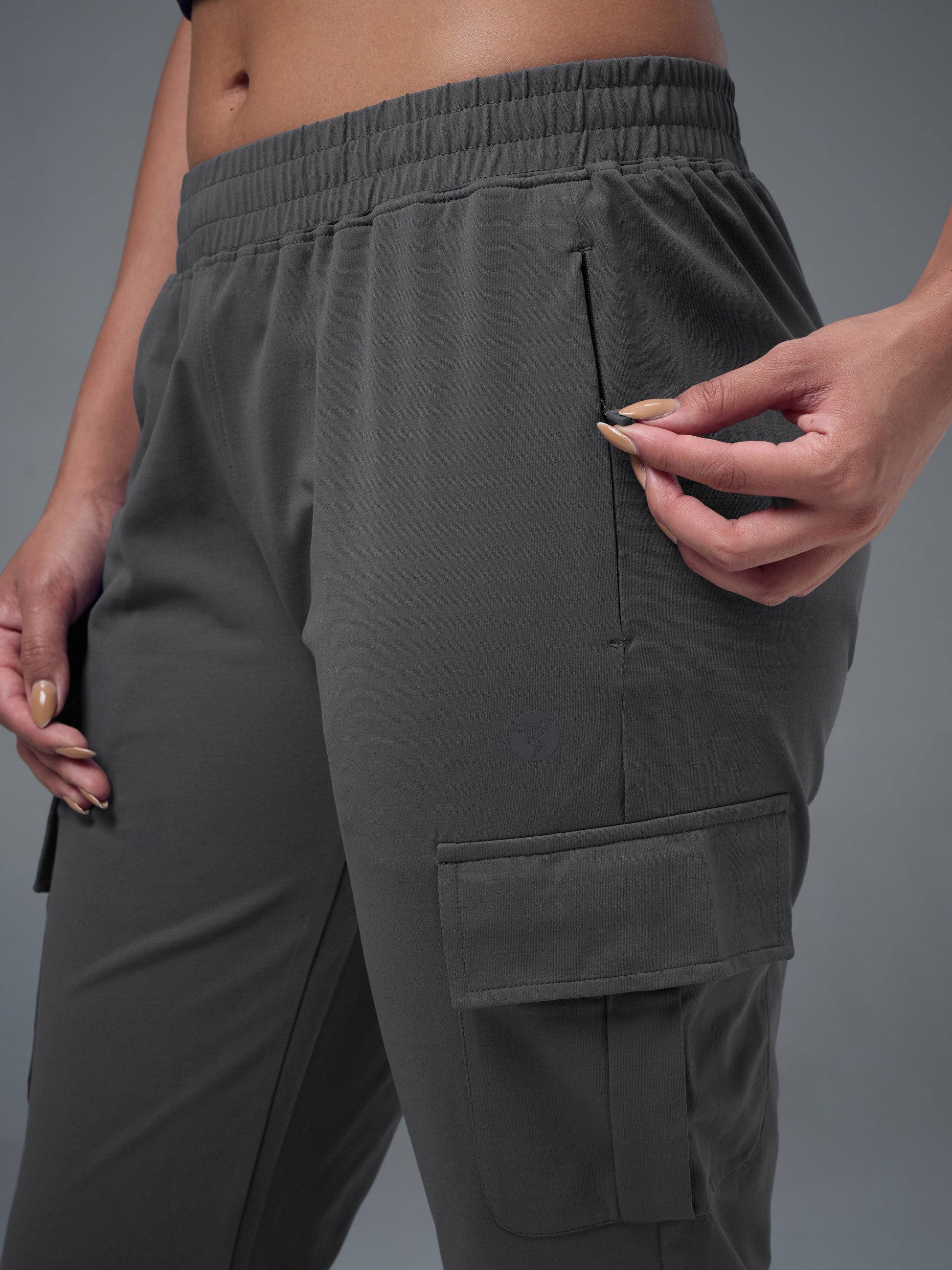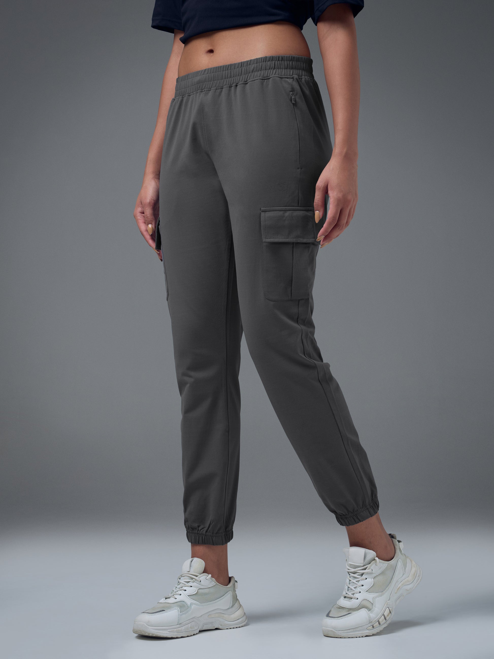 Women Solid Slim Fit Cargo Trackpants with TECHNO GUARD