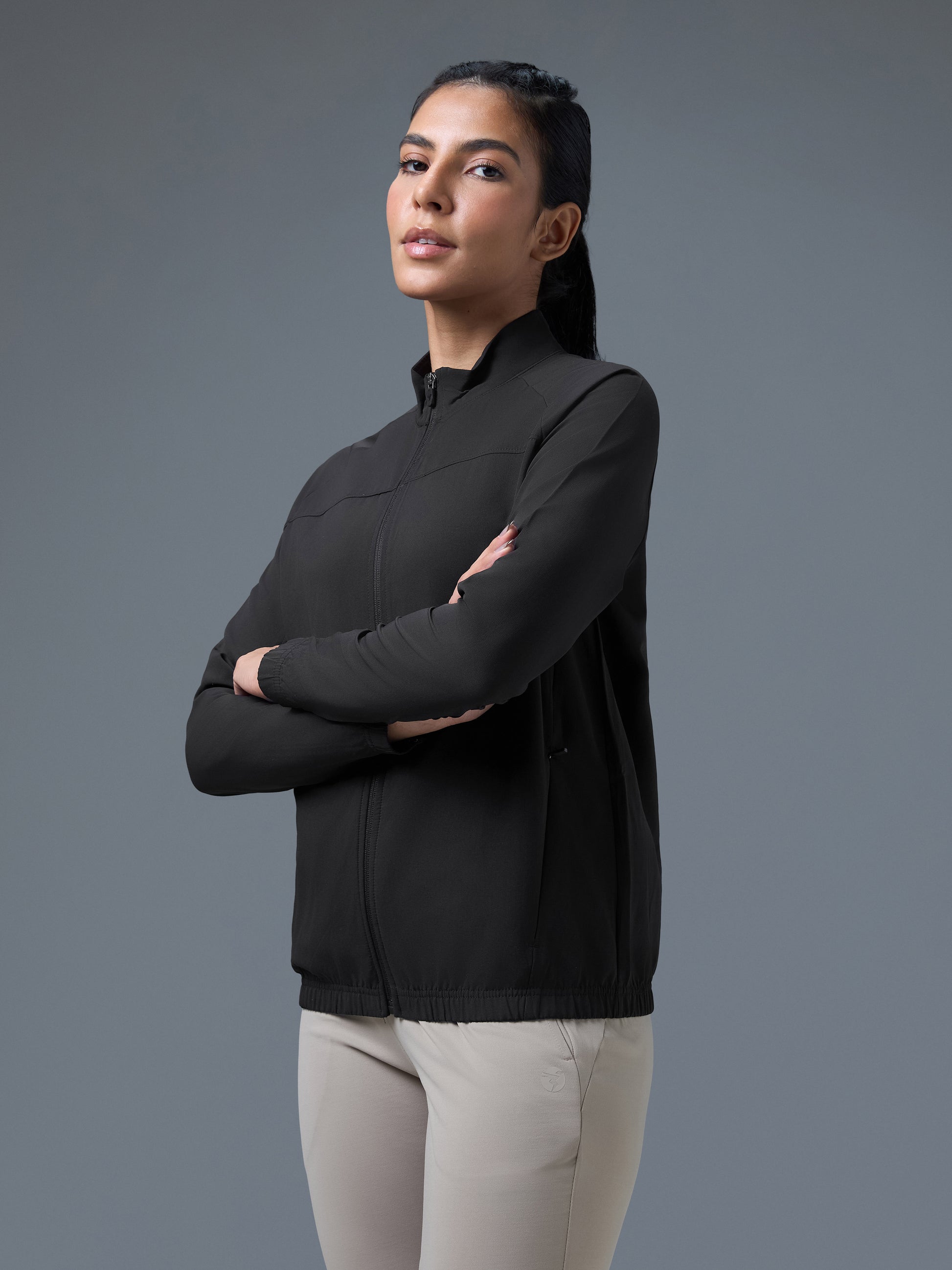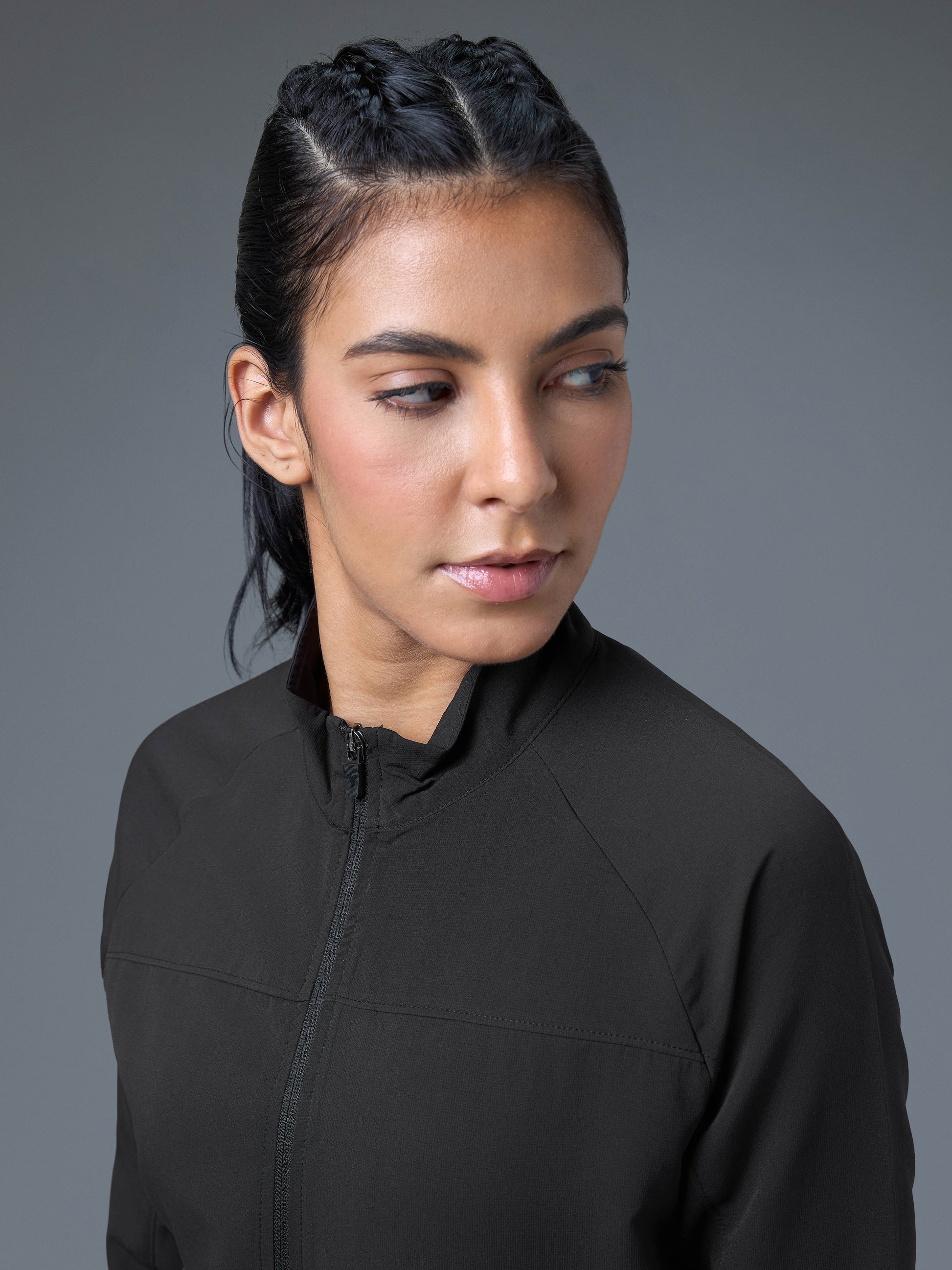 Offer Valid on a Minimum Cart Value of ₹999Women Solid Slim Fit Mock Neck Sports Jacket with TECHNOLITE