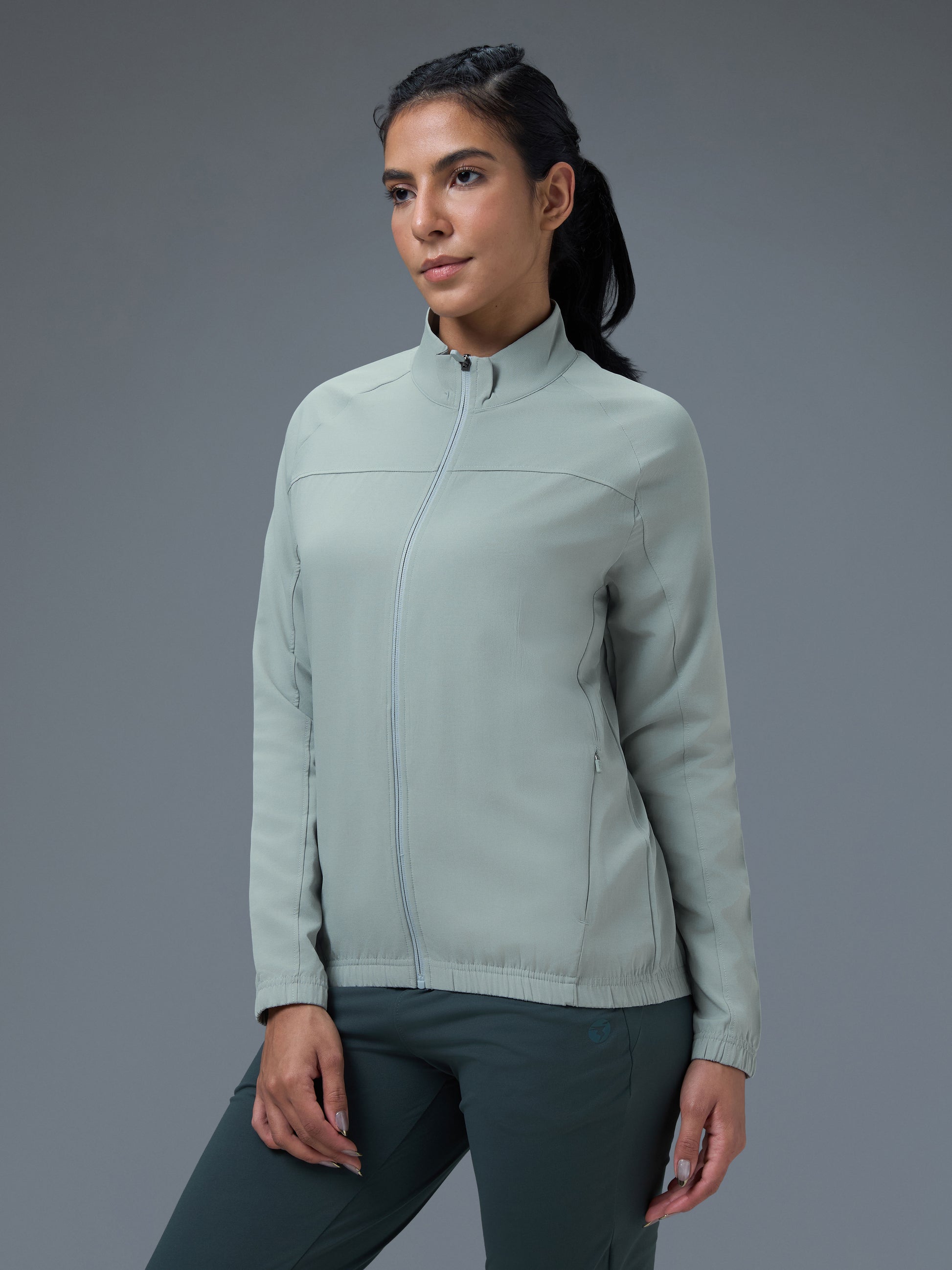 Offer Valid on a Minimum Cart Value of ₹999Women Solid Slim Fit Mock Neck Sports Jacket with TECHNOLITE