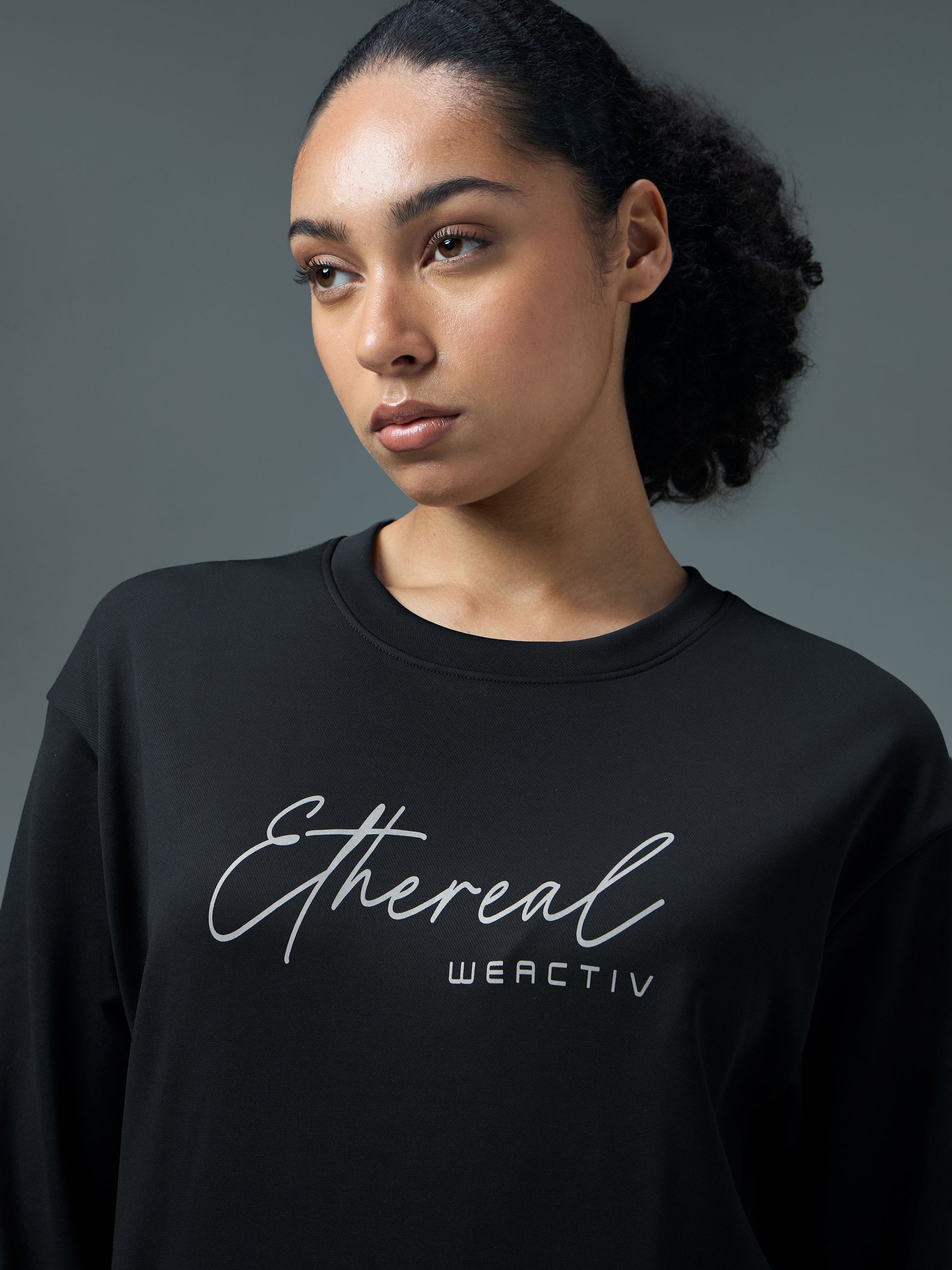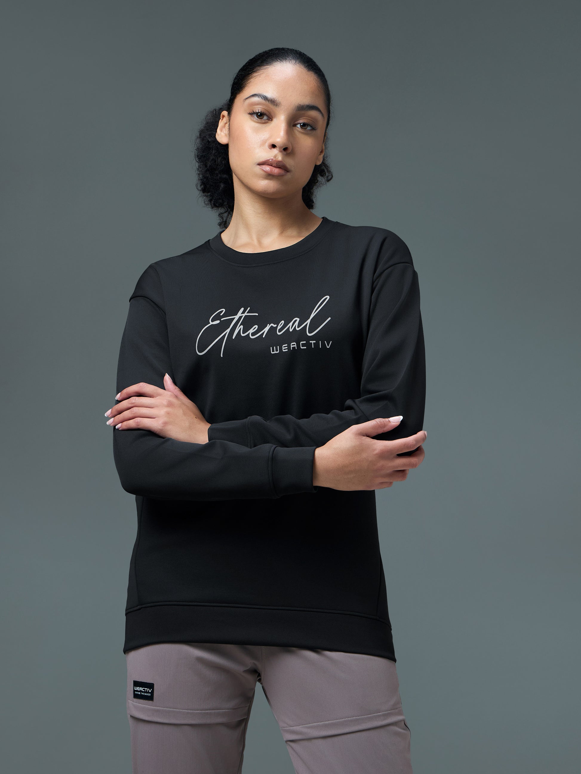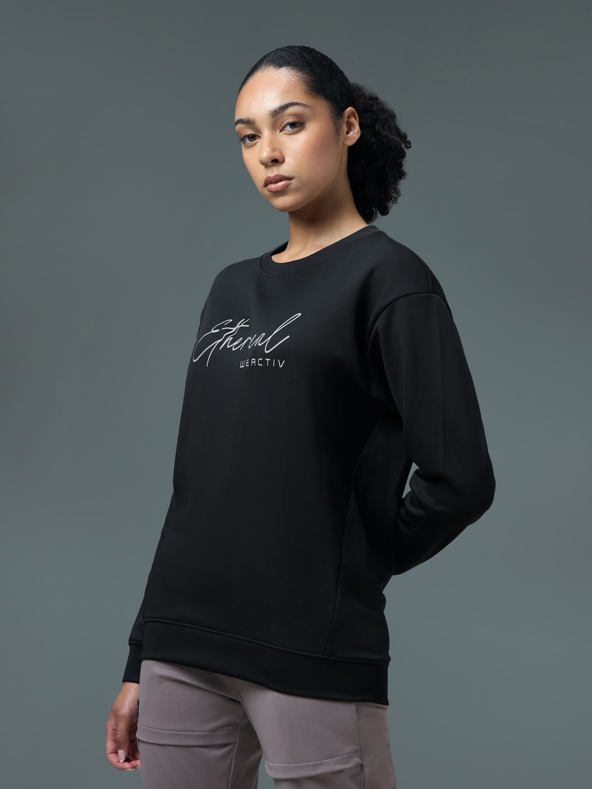 Women Solid Slim Fit Round Neck Sports Sweatshirt with ELASTOPLUS