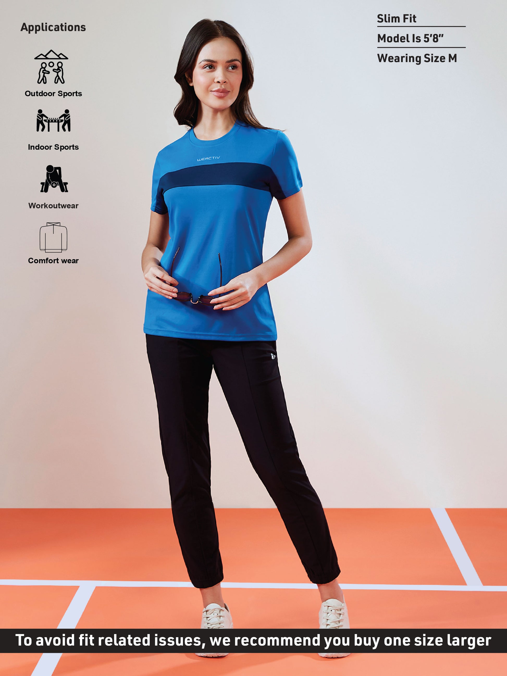 Women Solid Slim Fit Round Neck T-shirt with TECHNO COOL