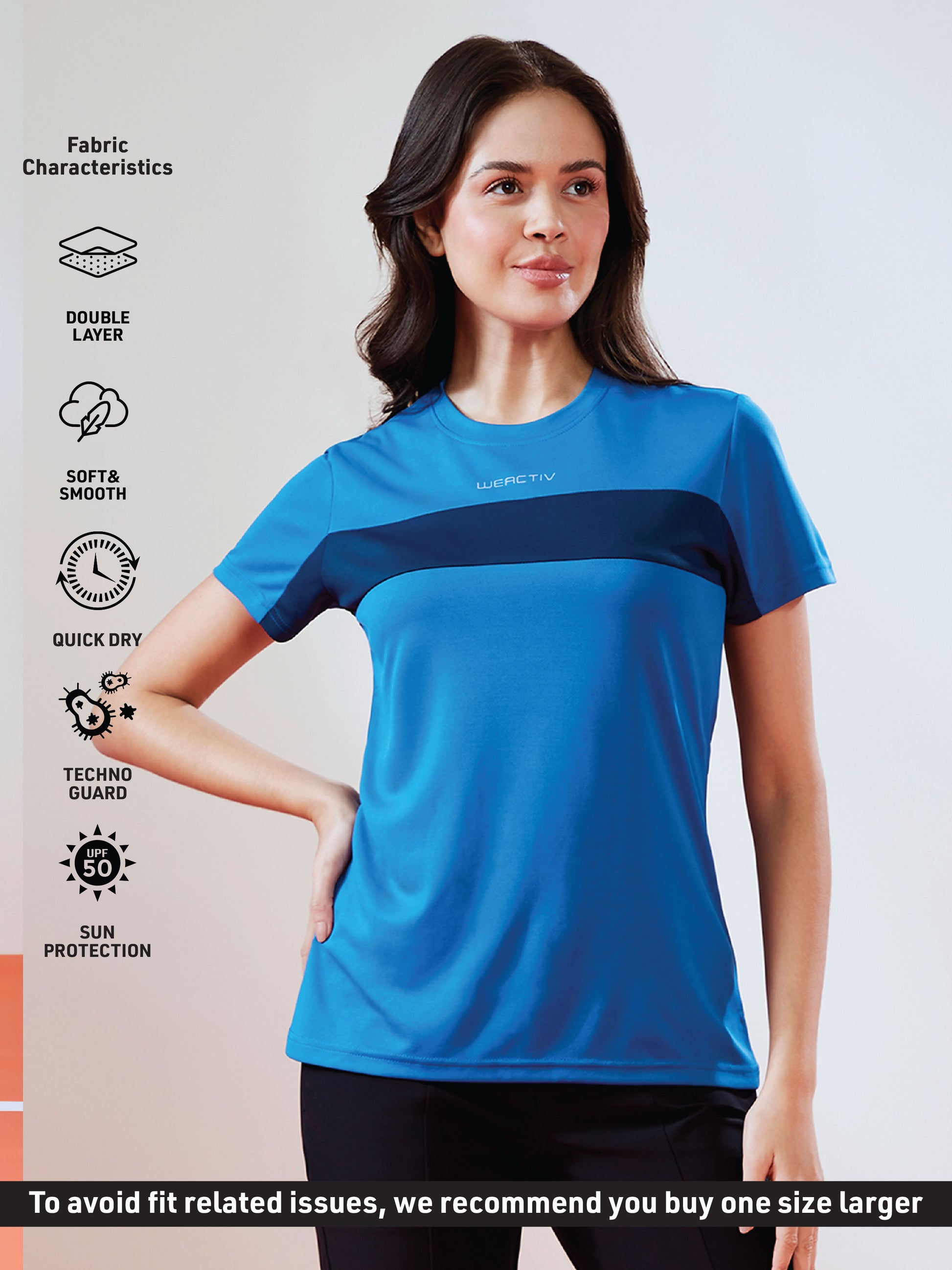 Experience peak comfort and style in our Women's Active T-Shirt. Infused with TechnoCool for a cool feel, Technoguard for freshness, UPF50+ sun protection, 2-Way Stretch for flexibility, Soft & Smooth touch, and Anti Static technology for all-day comfort. Elevate your active wardrobe effortlessly