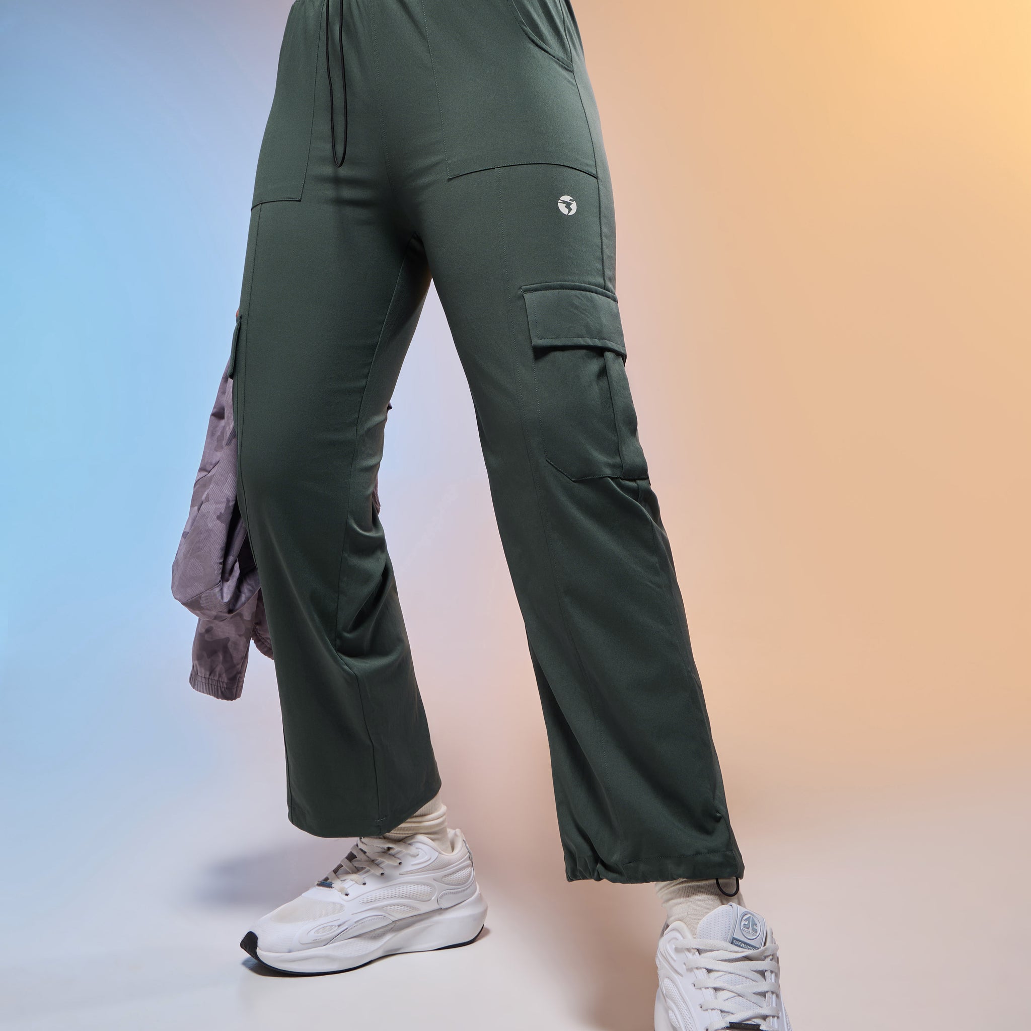 Women Solid Slim Fit Sports Cargo Trackpants with TS FLEXI