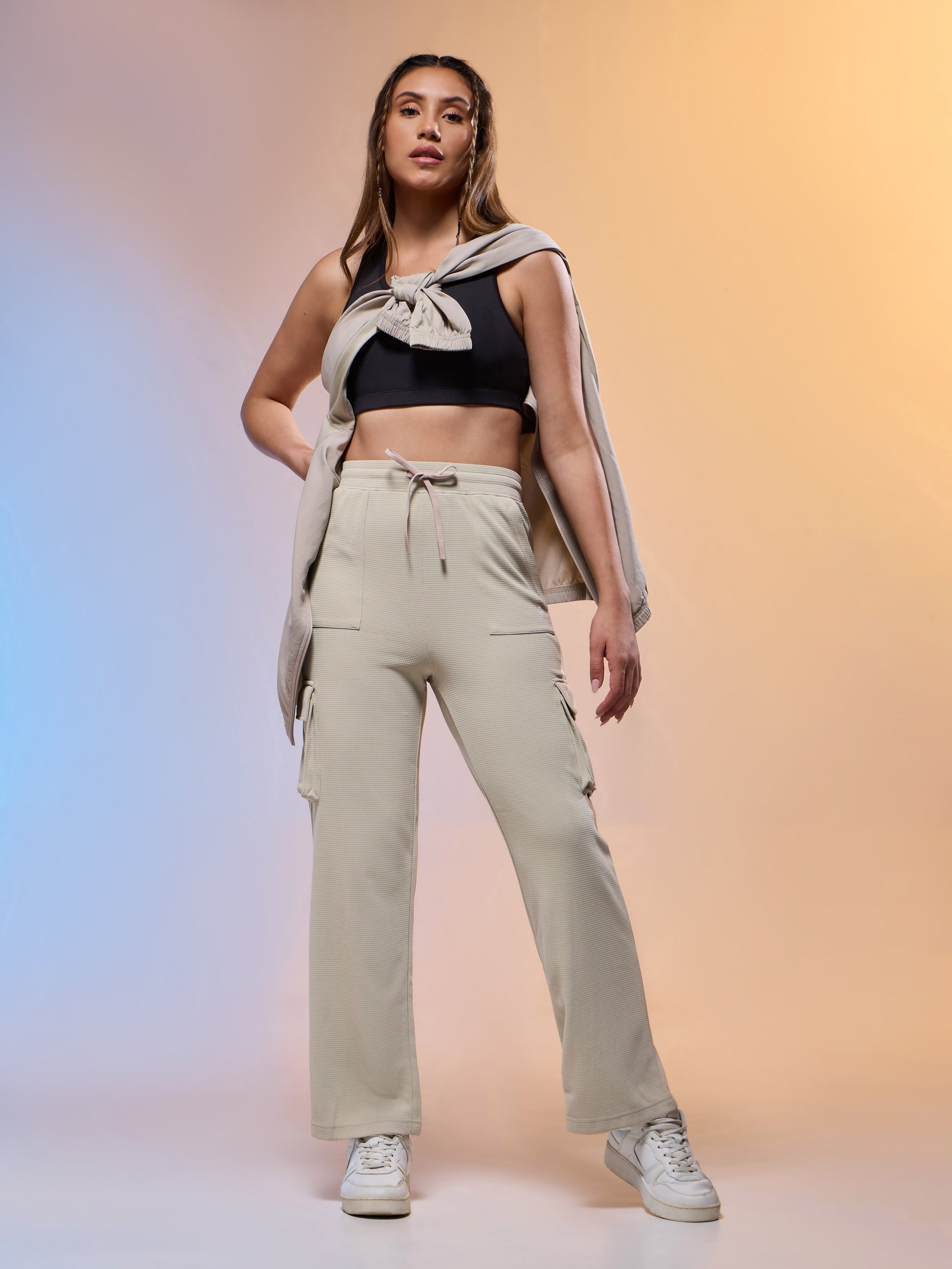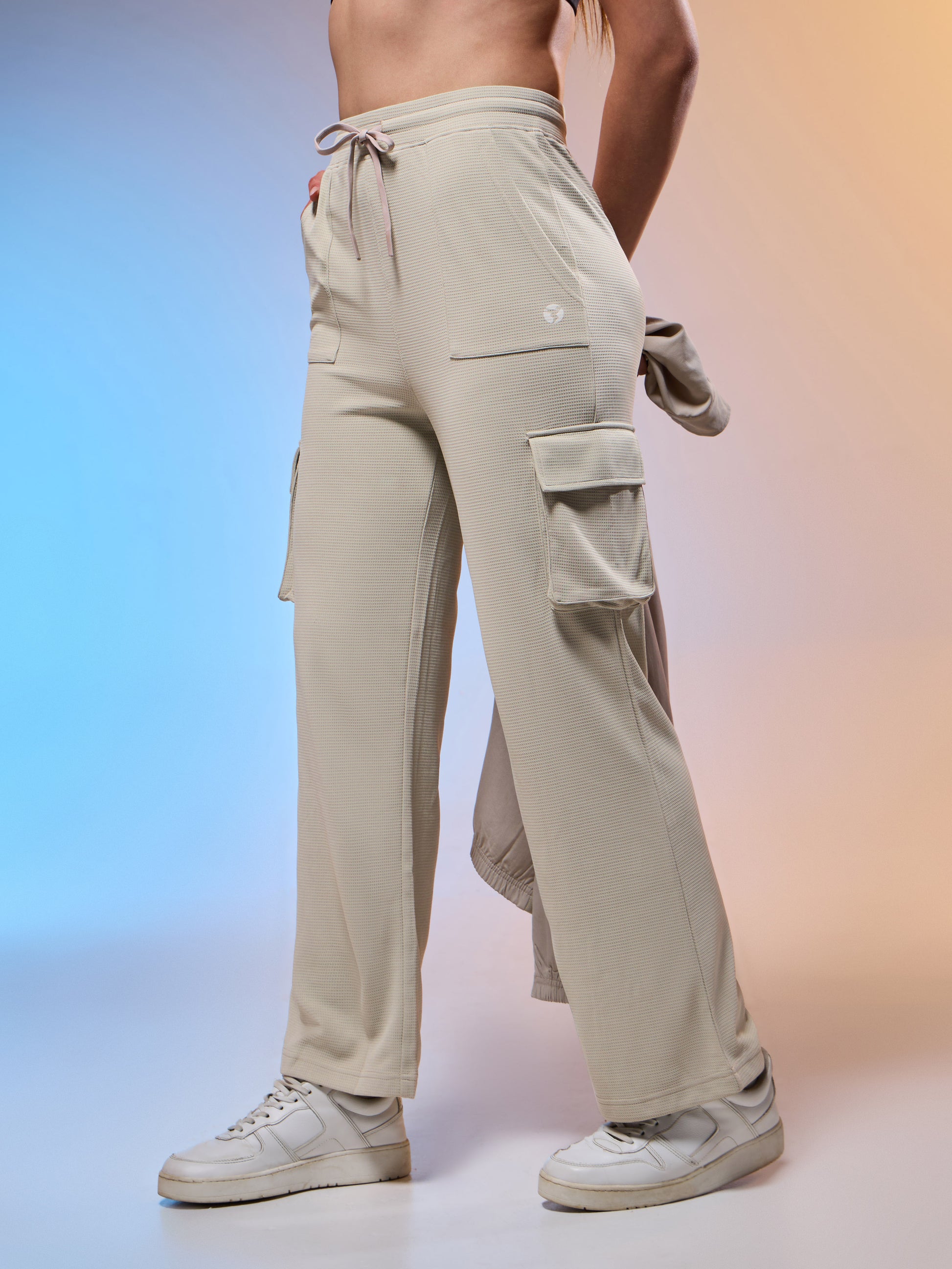 Offer Valid on a Minimum Cart Value of ₹999Women Solid Straight Fit Cargo Trackpants with TECHNOCOOL+