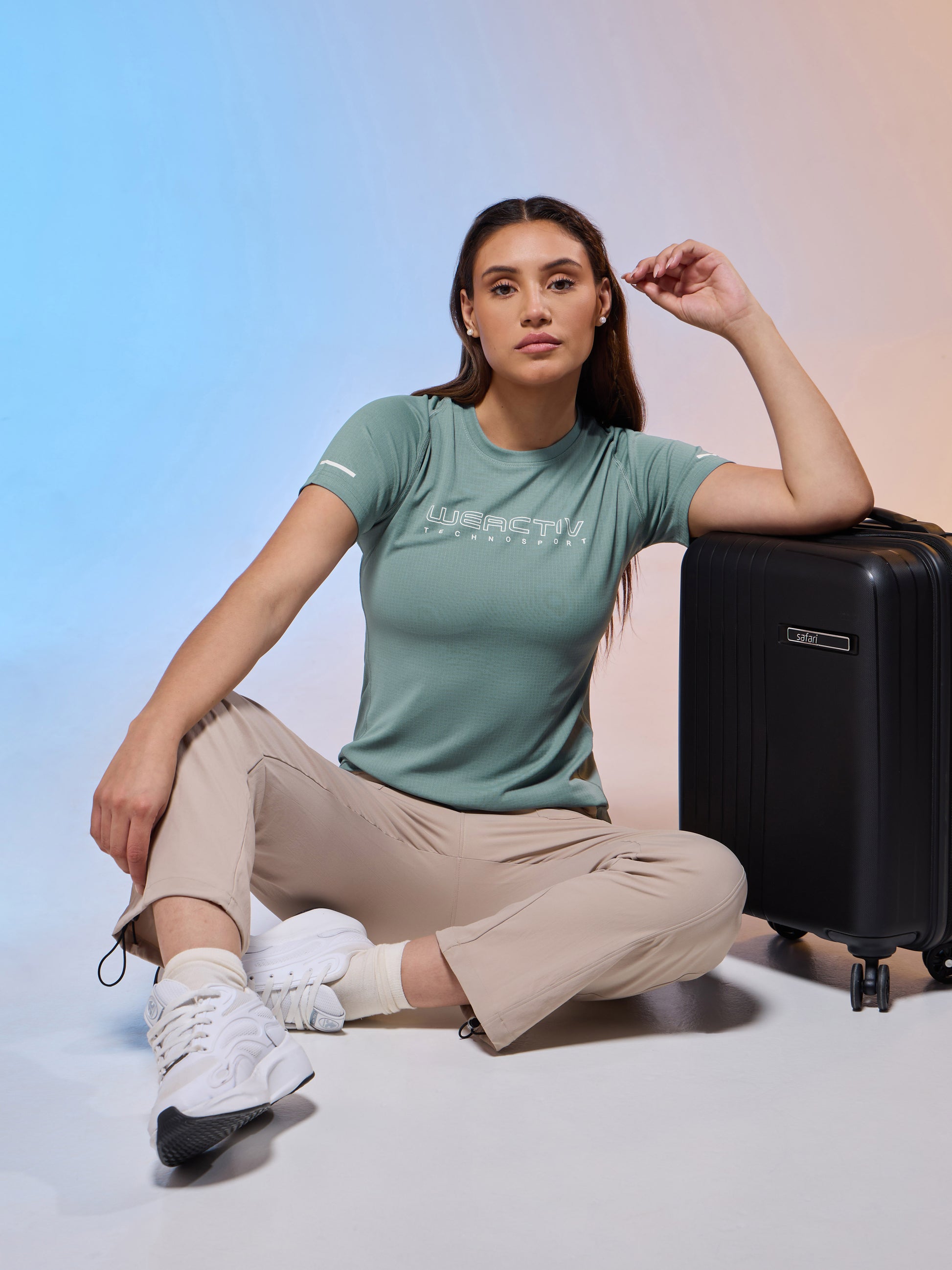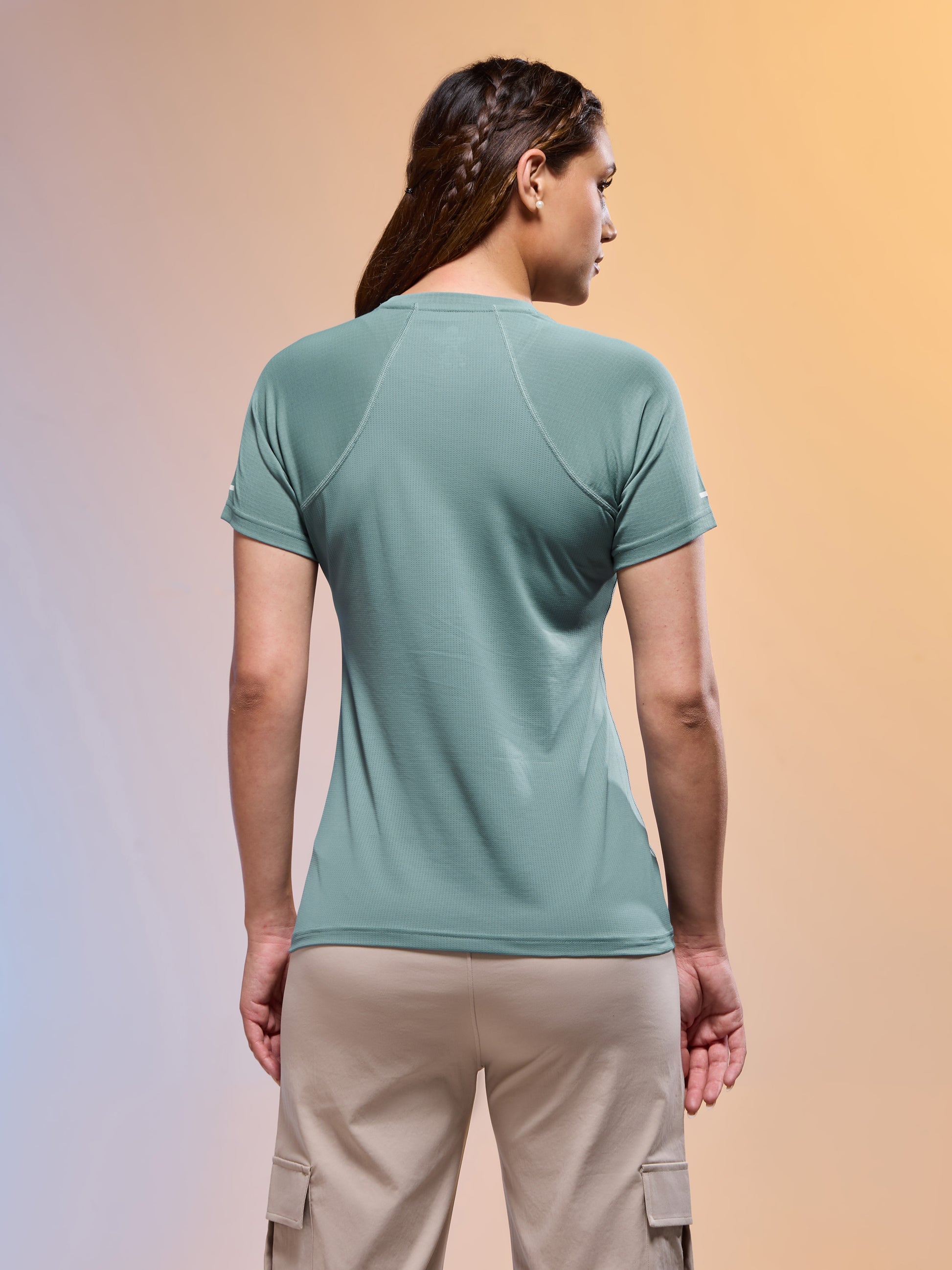 Offer Valid on a Minimum Cart Value of ₹999Women Typography Print Regular Fit Round Neck Sports Tee with TECHNOCOOL+