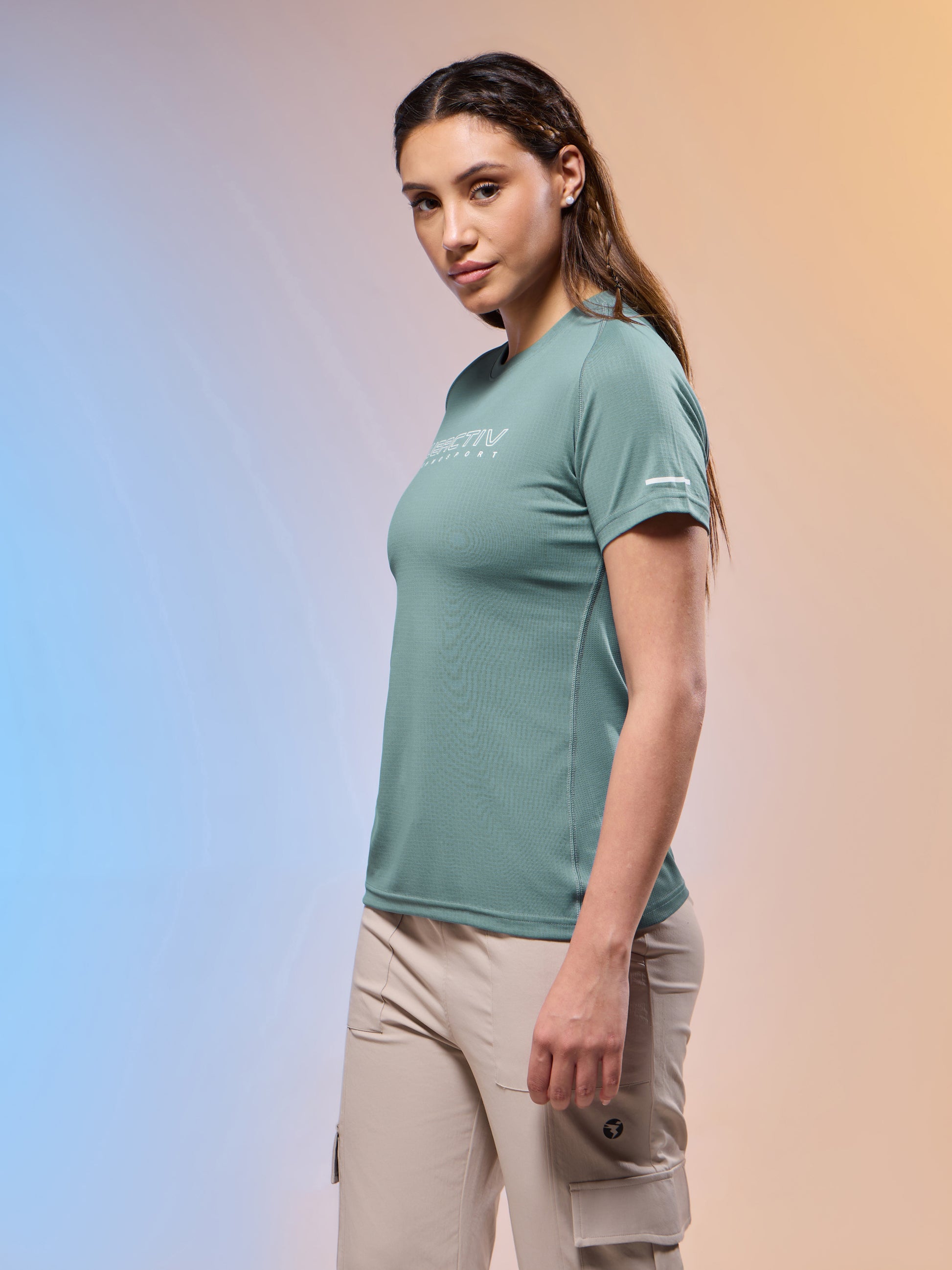 Stay cool and stylish in our Women's Active T-Shirt, featuring TECHNOCOOL+ for dryness in hot conditions. Enjoy UPF50+ sun protection, ODOURFREE freshness, TECHNOGUARD anti-microbial shield, 2-Way Stretch for freedom of movement, Soft & Smooth touch, and Anti Static technology. Embrace comfort that goes beyond expectations